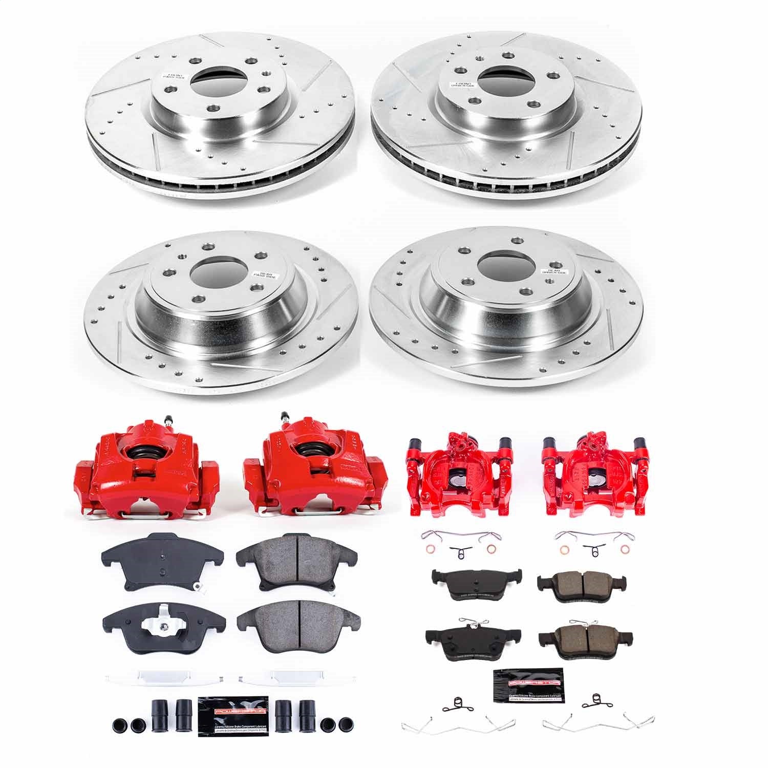 PowerStop - Front and Rear Z23 Daily Driver Carbon-Fiber Ceramic Brake Pad, Drilled & Slotted Rotor and Caliper Kit