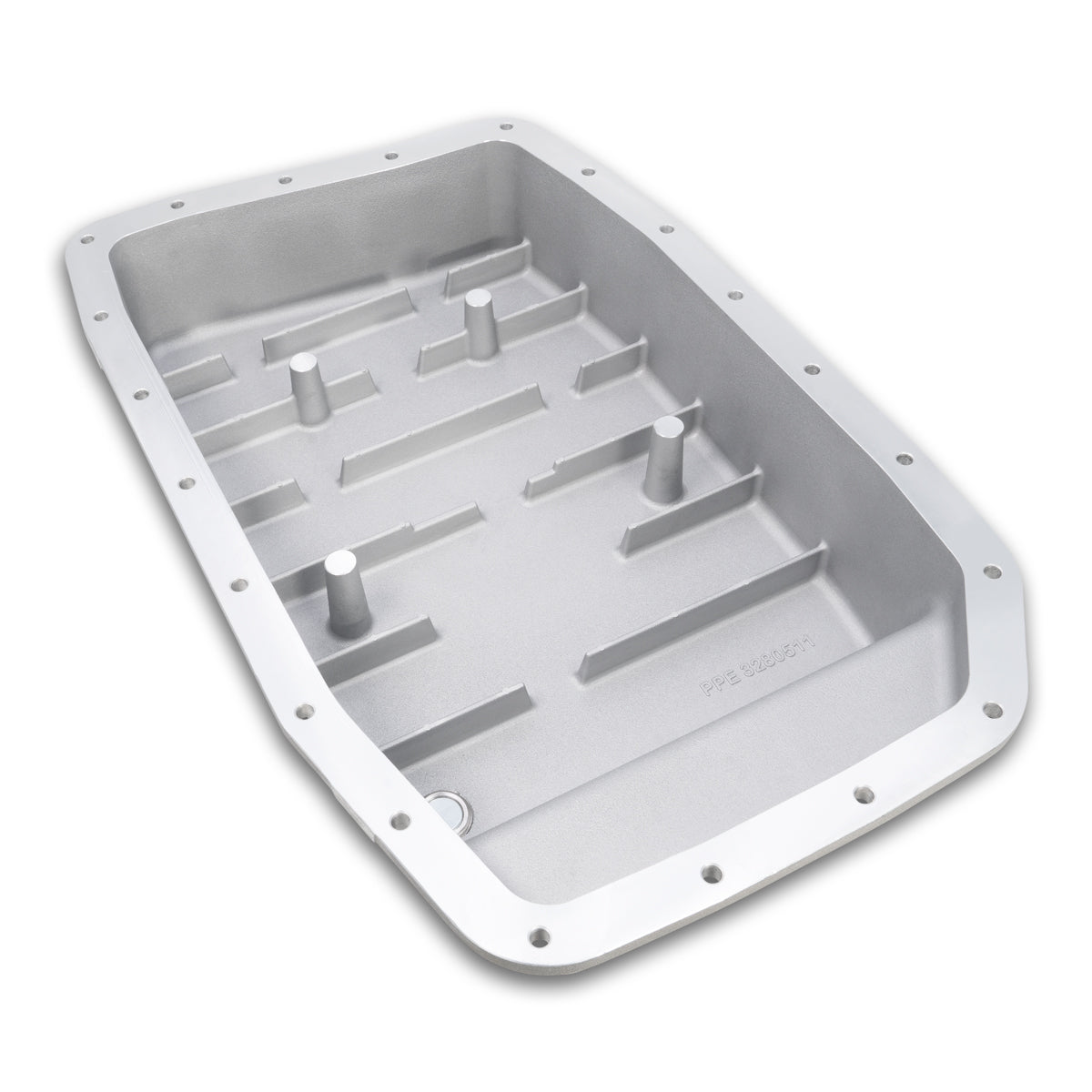 PPE's Heavy-Duty Deep 6R80 Transmission Pan holds an extra 4.25 quarts of fluid and is cast from high-quality A356.0-T6 aluminum alloy for strength and optimum heat dissipation.