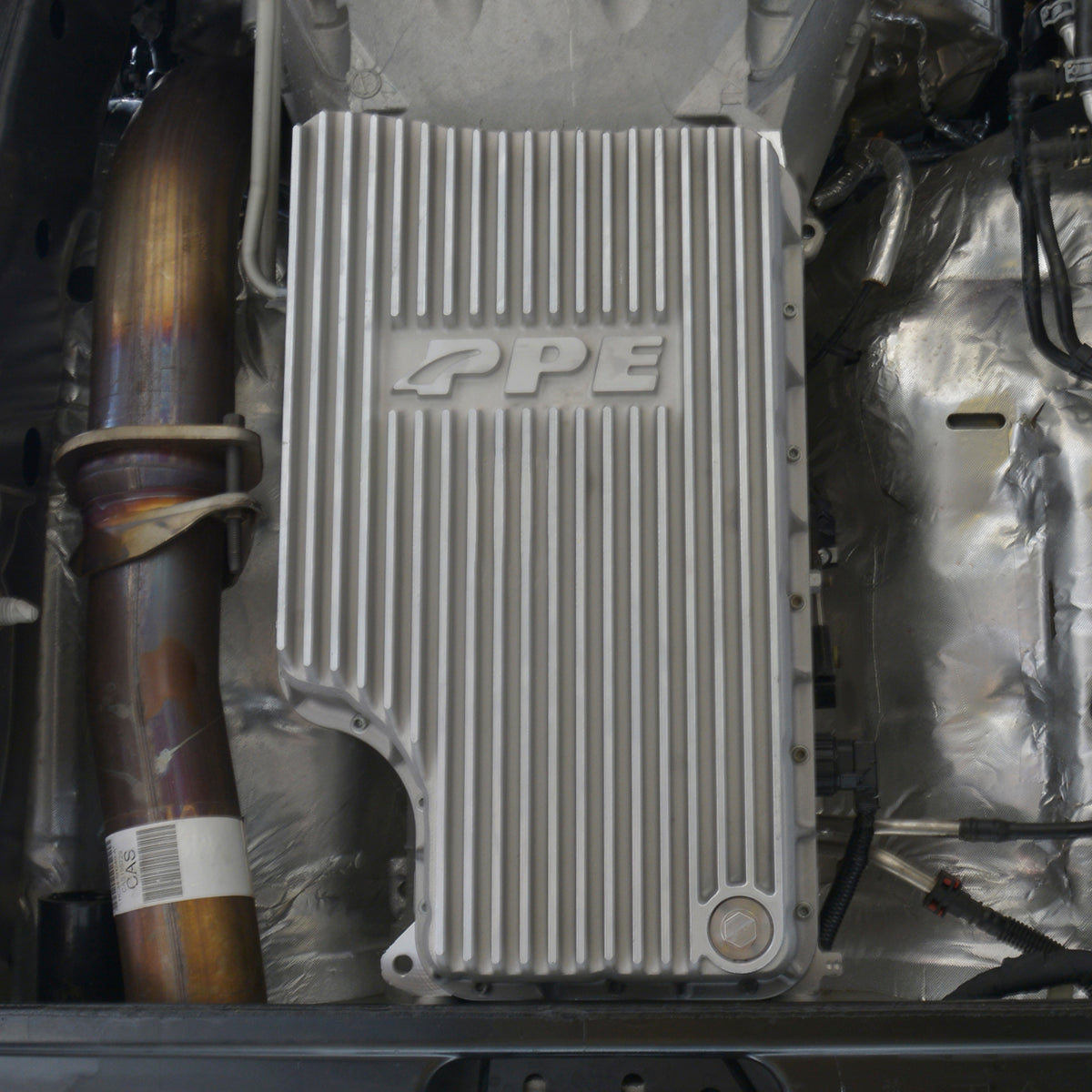PPE's cast aluminum, high-volume transmission pan is engineered to be a direct bolt-on replacement to the stock-stamped steel pan. This easy upgrade has a 5-inch depth and holds 14 quarts of fluid - that's 7 quarts more than stock. The internal heat sinks channel oil and prevents sloshing. The Deep external fins radiate heat to keep fluid temps down. Thick side gussets add strength and provide rigidity.