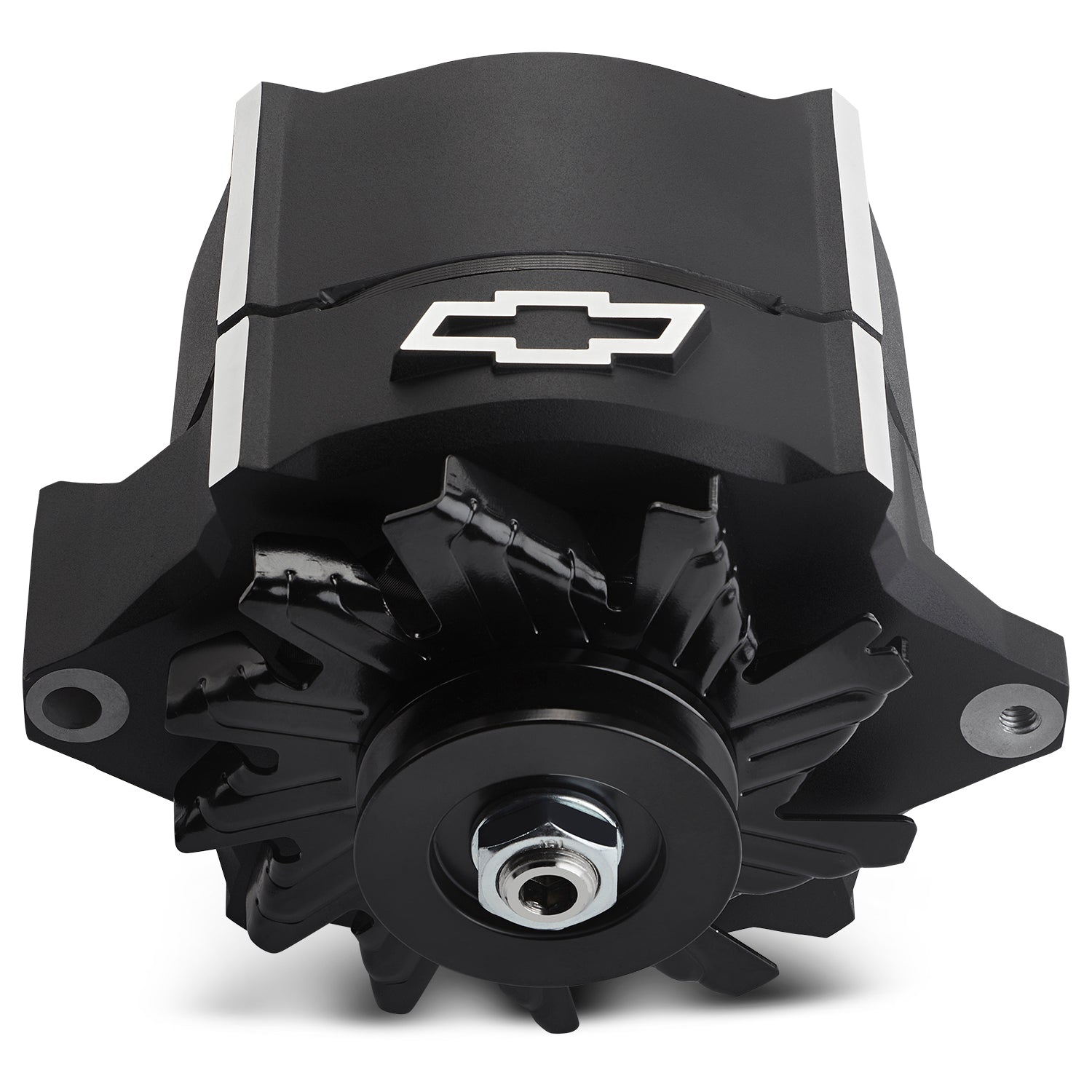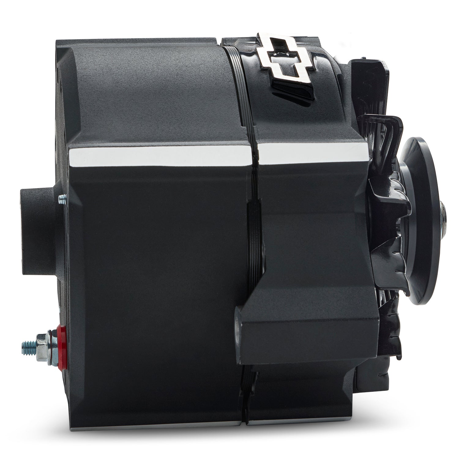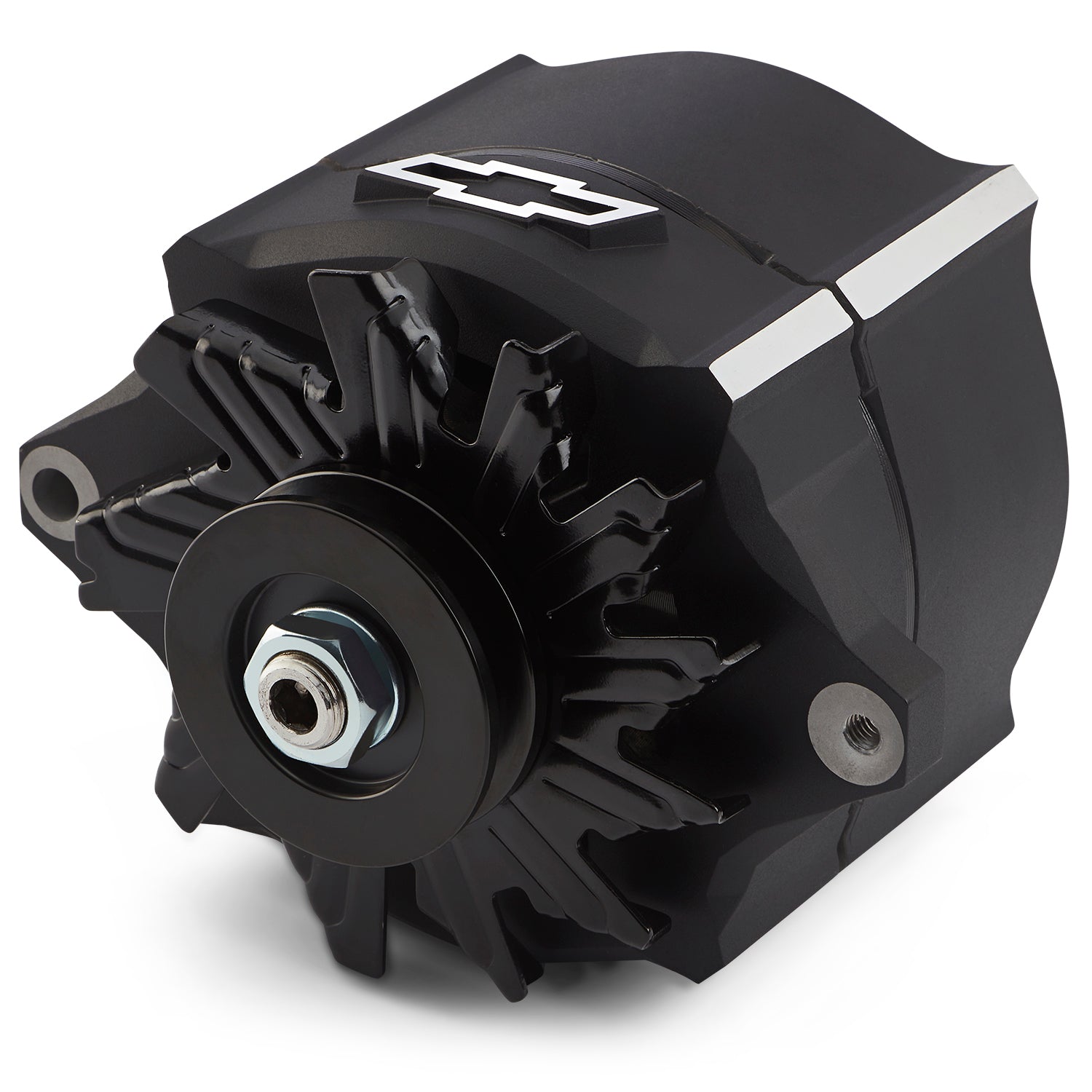 Alternator - Slant-Edge - 100 amps - 12V - 1-Wire - Internal Regulator - Single V-Belt Pulley - Chevy Bowtie Logo - Aluminum Case - Crinkle Black Powder Coat - Each