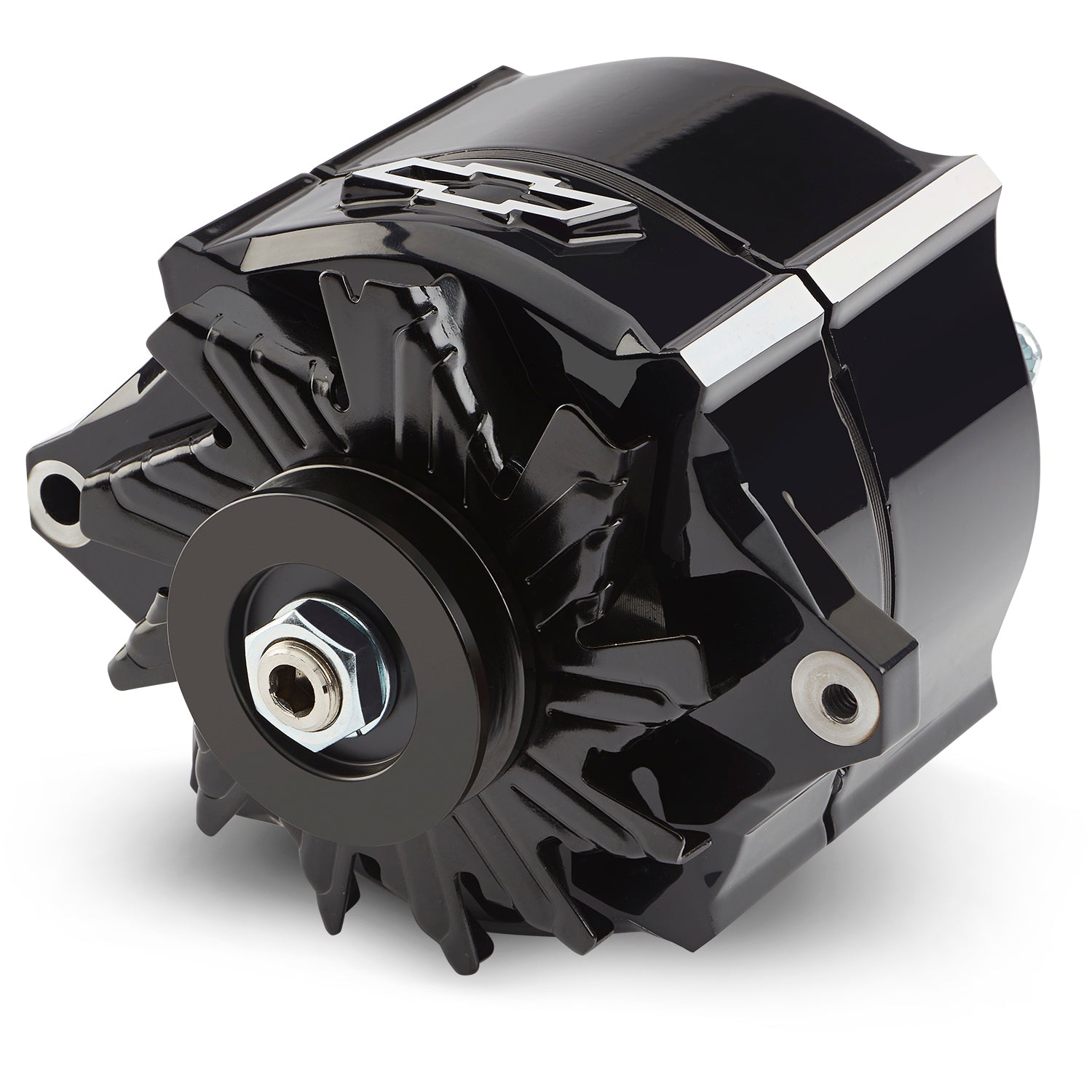Alternator - Slant-Edge - 100 amps - 12V - 1-Wire - Internal Regulator - Single V-Belt Pulley - Chevy Bowtie Logo - Aluminum Case - Black Powder Coat - Each
