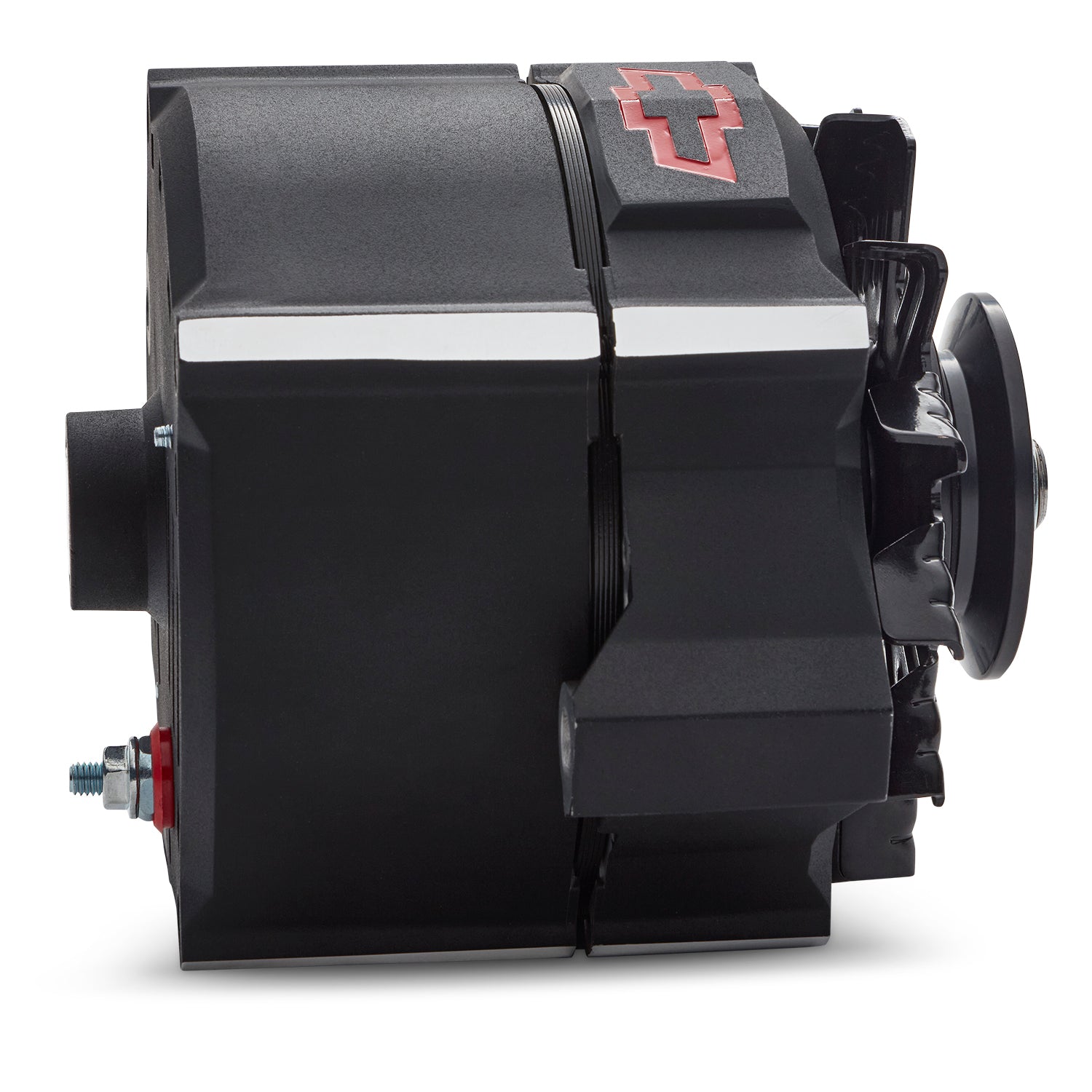 Alternator - Slant-Edge - 100 amps - 12V - 1-Wire - Internal Regulator - Single V-Belt Pulley - Chevy Bowtie Logo - Aluminum Case - Crinkle Black Powder Coat - Each
