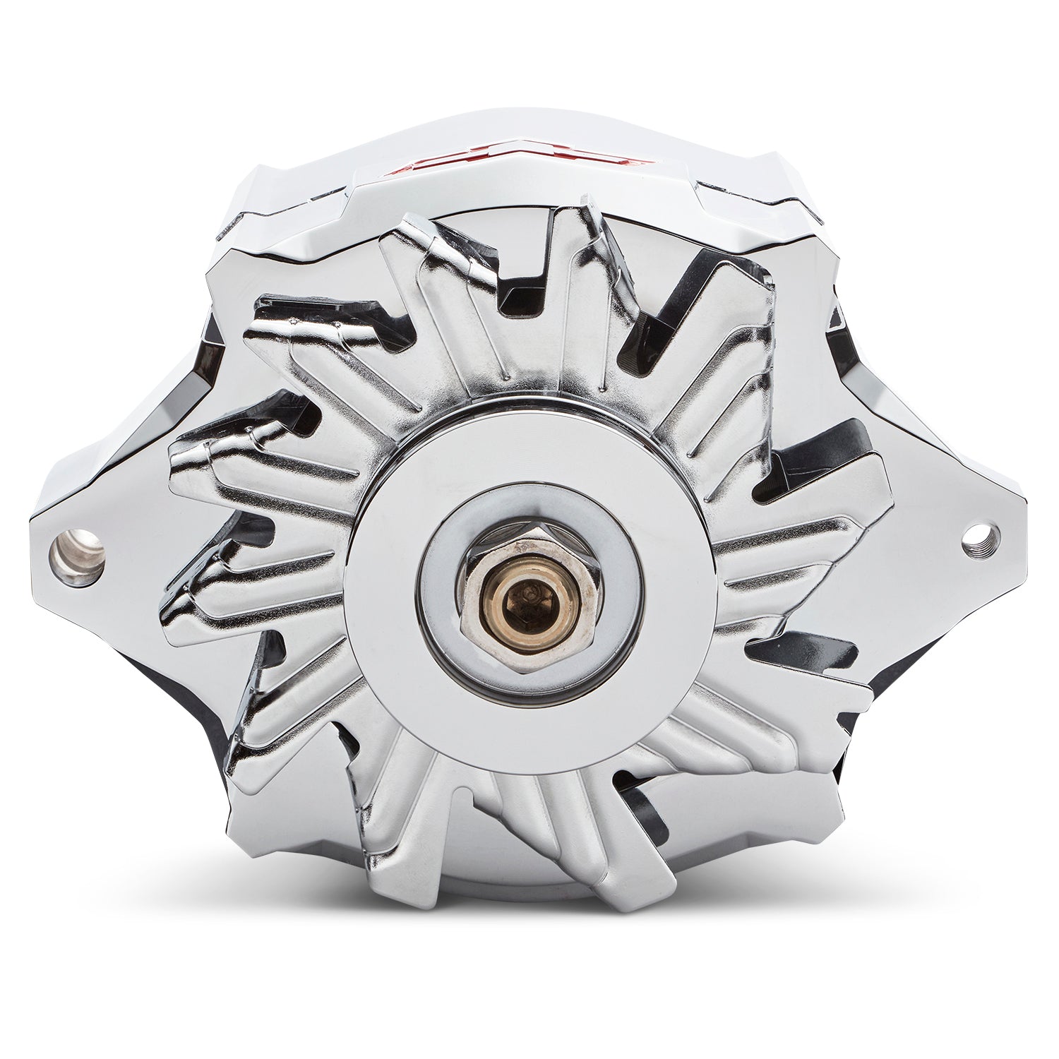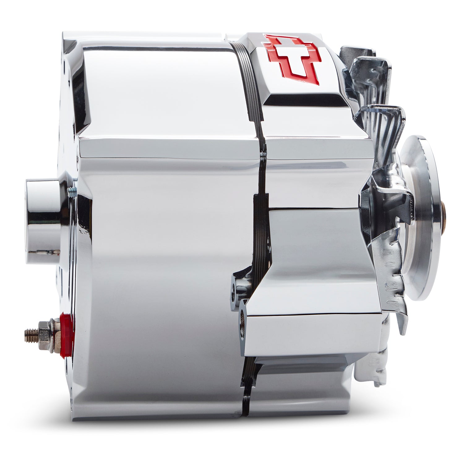Alternator - Slant-Edge - 100 amps - 12V - 1-Wire - Internal Regulator - Single V-Belt Pulley - Chevy Bowtie Logo - Steel Case - Chrome - Each