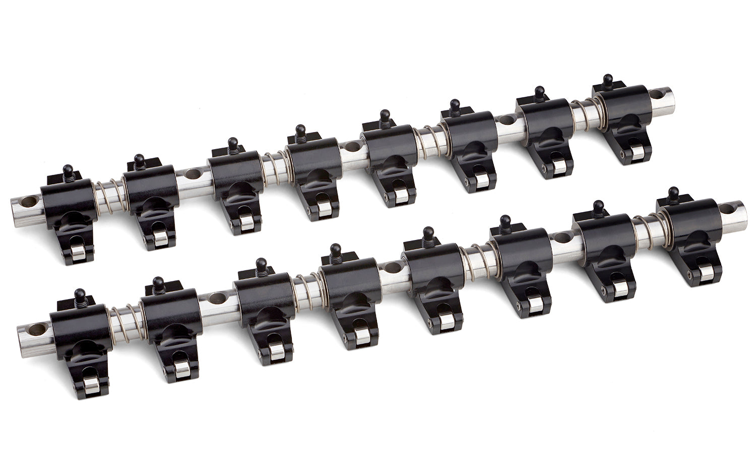These beautiful new aluminum shaft-mount roller rockers are perfect for your big block (B/RB) engine. The bronze bushings provide a friction free environment for the rocker to pivot on. The system is designed so the oil comes up through the shaft and into the rocker underneath the bushing. Channels and holes in the bushing allow for the oil to lubricate the pivot area. The race-proven roller tip not only unleashes horsepower, it also lengthens valve train component life and reduces wear and tear on valve stem tips. Precision machined to insure consistency and ratio accuracy. The adjustable push rod tips allow for precise lash adjusting. 16 aluminum roller rockers, hardened shafts, and spacer hardware included. Use your stock bolts to attach the shaft to your cylinder head.