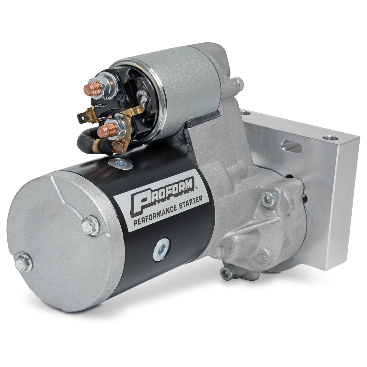 High-torque, gear-reduction design. 100 percent NEW, not rebuilt. Offset design results in more clearance between the oil pan and the starter, and can be rotated for additional chassis clearance. The high-torque, high-output motor spins the engine over faster than stock starters, delivering 40-50 percent more cranking power. 3.75-to-1 sealed gear-reduction drive and full ball bearing construction. Includes shims to set pinion-gear engagement, when necessary. Approved by all leading sanctioning organizations. Sold individually.