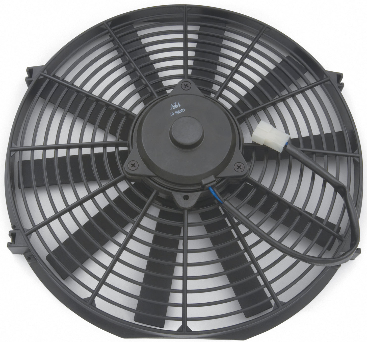 These fans help prevent overheating in stop-and-go traffic. Designed to fit the most popular cars and trucks, increases gas mileage, improves engine performance, frees the waterpump pulley for more RPM, and installs easily within minutes using simple hand tools. The 10 inch, 12 inch, 14 inch, and 16 inch fans are reversible, mount to front or back of radiator. Ultra-thin design to fit cramped locations. Reinforced glass filled polypropylene blade and plastic housing for minimized weight. Nylon tie mounting kit included. Nominal fan size is based upon approximate overall diameter. Sold Individually.