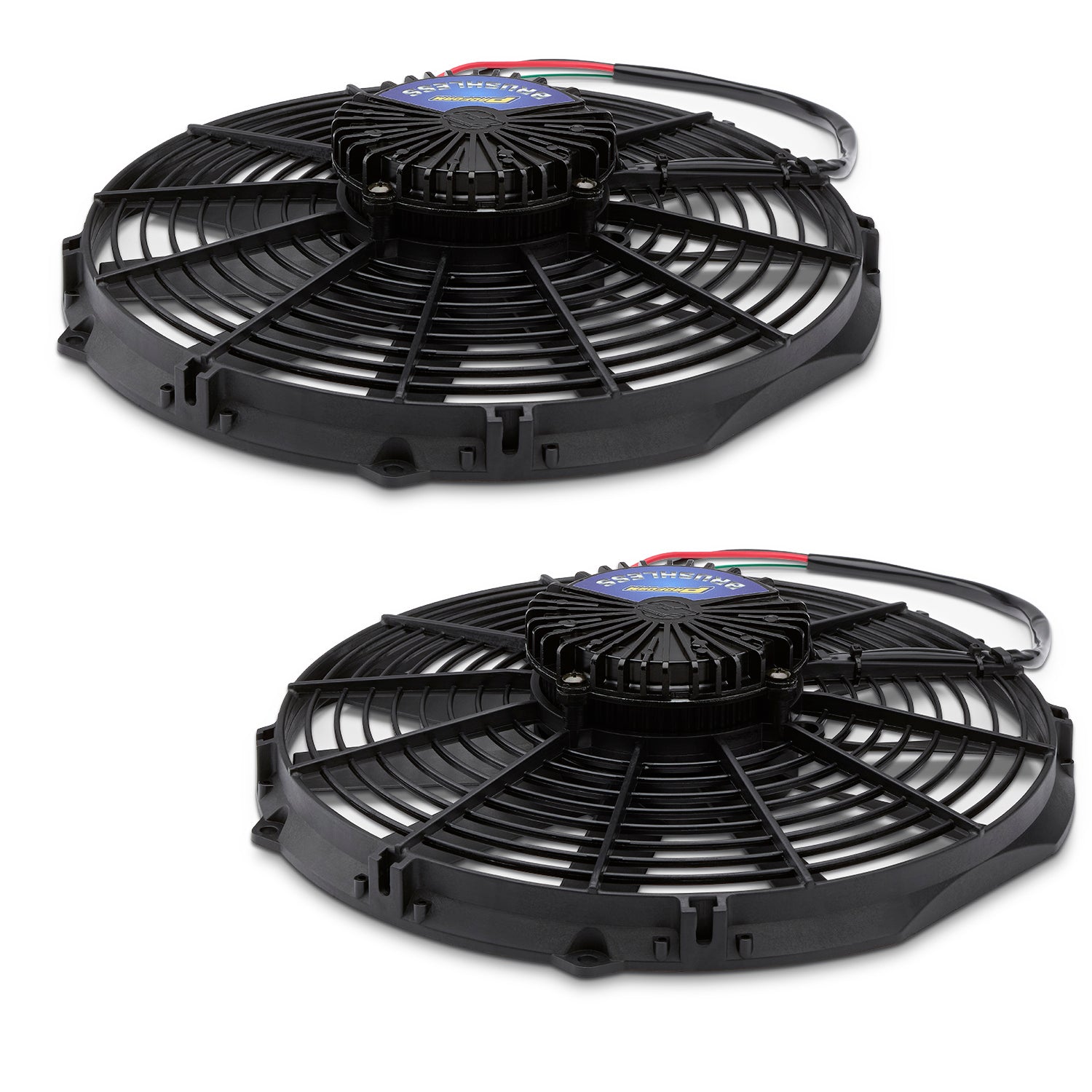 2 Pack of 12" Brushless Fans, 67034 x2. PROFORM's new brushless motor electric cooling fans deliver more CFM than than the competition for MAXIMUM COOLING. These Brushless fans are lightweight, low-profile, no amp spikes, and create cooling unlike anything out there. The best part is, it's totally universal and designed for 12 volt systems. Not fancy engine specific controller required, just wire up the (+) and (-), and you're ready to good. Soft start ramp up prevents amp spikes. This is strictly a puller fan and is not reversible. Prevent overheating in stop-and-go traffic, designed to fit the most popular cars and trucks, frees the water pump pulley for more RPM, installs in minutes with simple hand tools. Thin design to fit cramped locations. Reinforced glass filled polypropylene blade and plastic housing for minimized weight. Nylon tie mounting kit included.