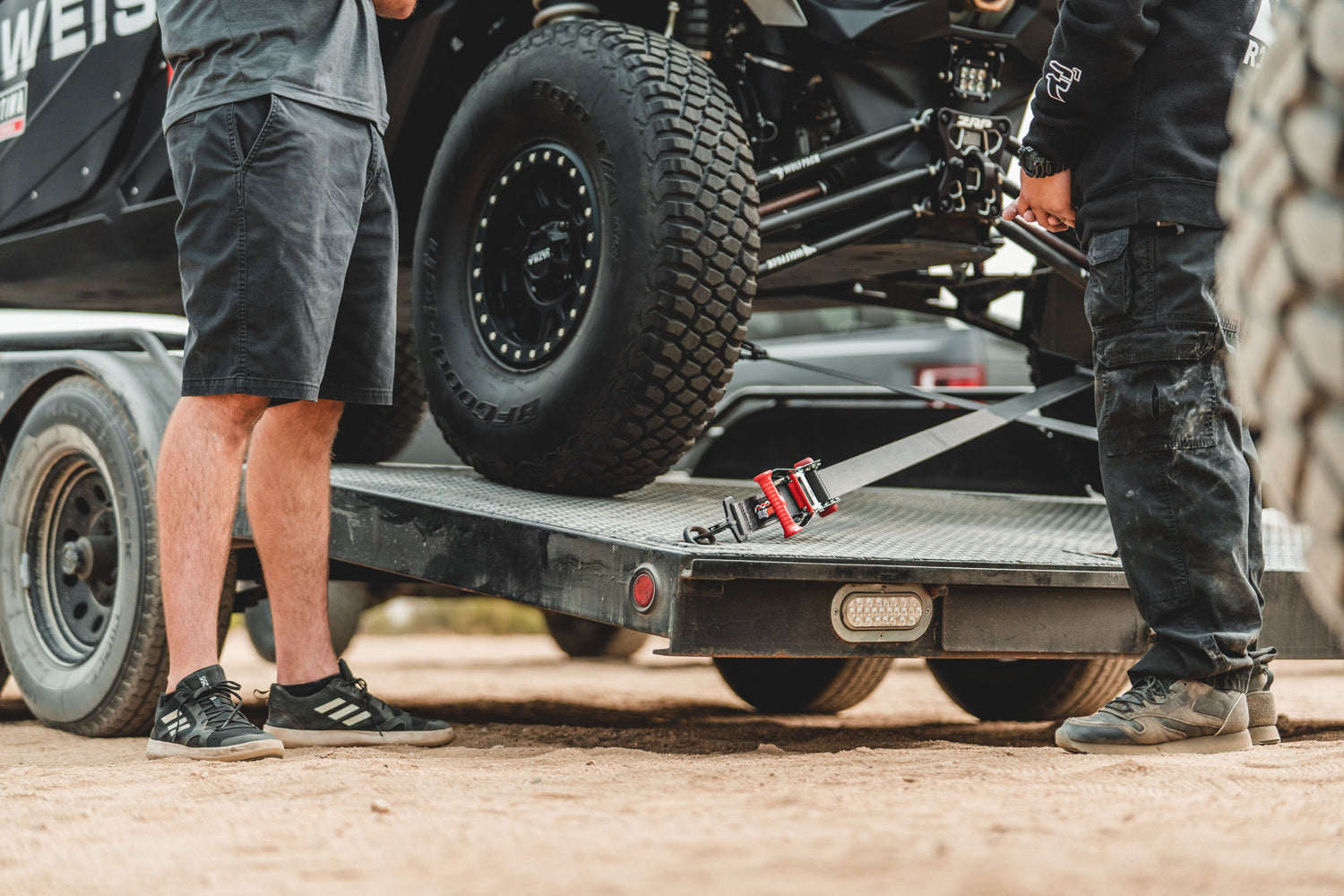 Perfect for securing your UTV, or lightweight vehicle. This ratcheting tie-down features a wide handle with a molded cushion grip which allows for comfort and good leverage during use. The coated release lever also acts as a locking mechanism once you have your tie down secured. The tie-down features a built in Soft-Tie that wraps around axles or a-arms, and prevents scratching. Includes twisted snap hooks on the end that wont come undone. 4,000 lb maximum rated capacity and a 1,333 lb safe working load.