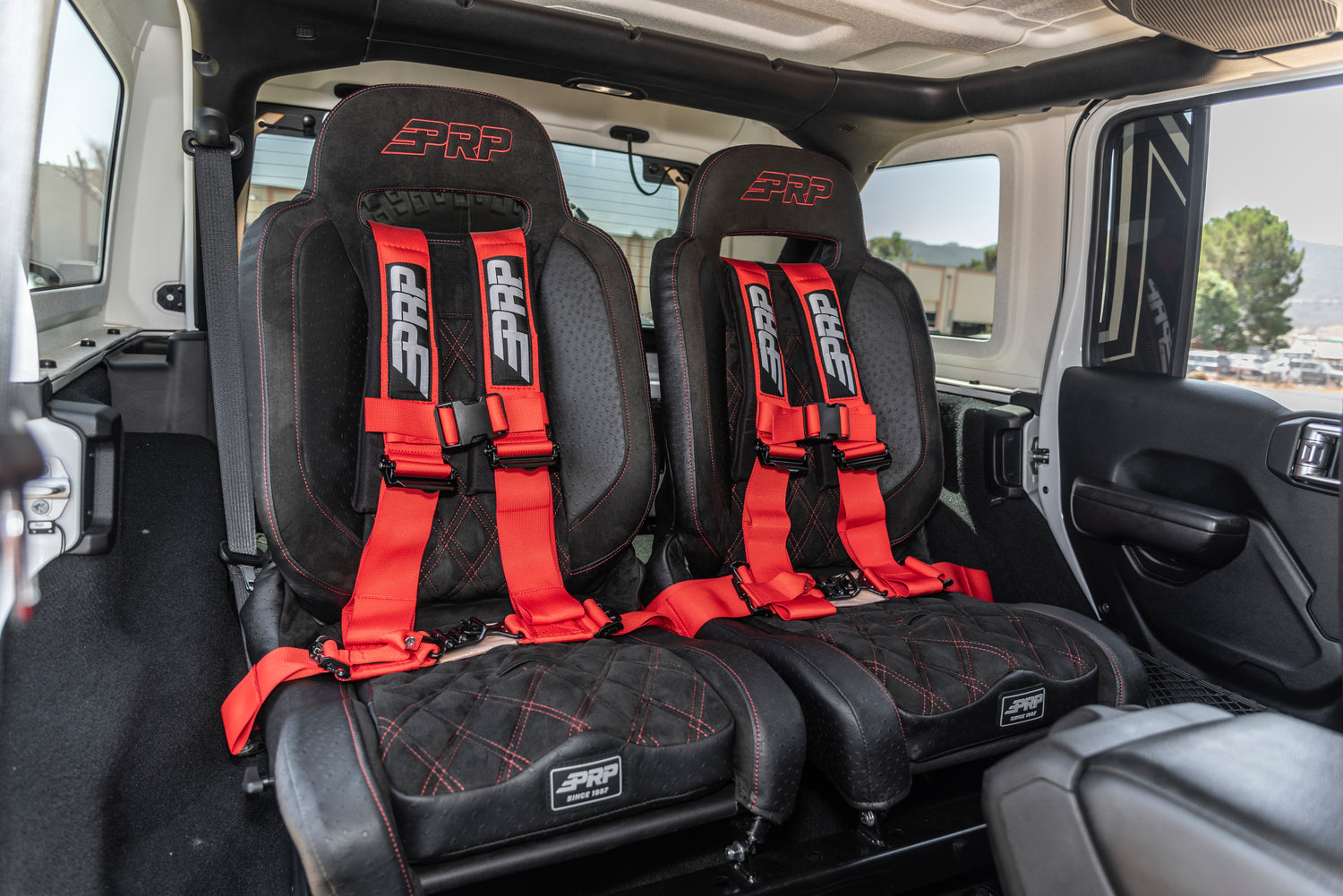 The Enduro Elite is our newest Reclining Suspension Seat, now with Elite Series styling. Designed to replace stock Jeep Wrangler, Jeep XJ, or truck seats, the Enduro supplies additional comfort for taking your daily driver off-roading. Included is a removable, contoured seat cushion for better leg support and longer comfort. The vinyl-coated nylon suspension liner and dual-density foam decrease the impact on the body, reducing the fatigue you feel after a long day in the dirt or dunes. The Enduro Elite reclines completely and inclines enough to allow access to the rear seats. The bottom tabs easily bolt to PRP’s series of mounts built for Jeep, Broncos, Ford Rangers, and more.
