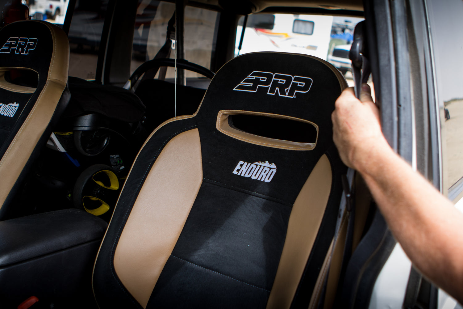 The Enduro Elite is our newest Reclining Suspension Seat, now with Elite Series styling. Designed to replace stock Jeep Wrangler, Jeep XJ, or truck seats, the Enduro supplies additional comfort for taking your daily driver off-roading. Included is a removable, contoured seat cushion for better leg support and longer comfort. The vinyl-coated nylon suspension liner and dual-density foam decrease the impact on the body, reducing the fatigue you feel after a long day in the dirt or dunes. The Enduro Elite reclines completely and inclines enough to allow access to the rear seats. The bottom tabs easily bolt to PRP’s series of mounts built for Jeep, Broncos, Ford Rangers, and more.