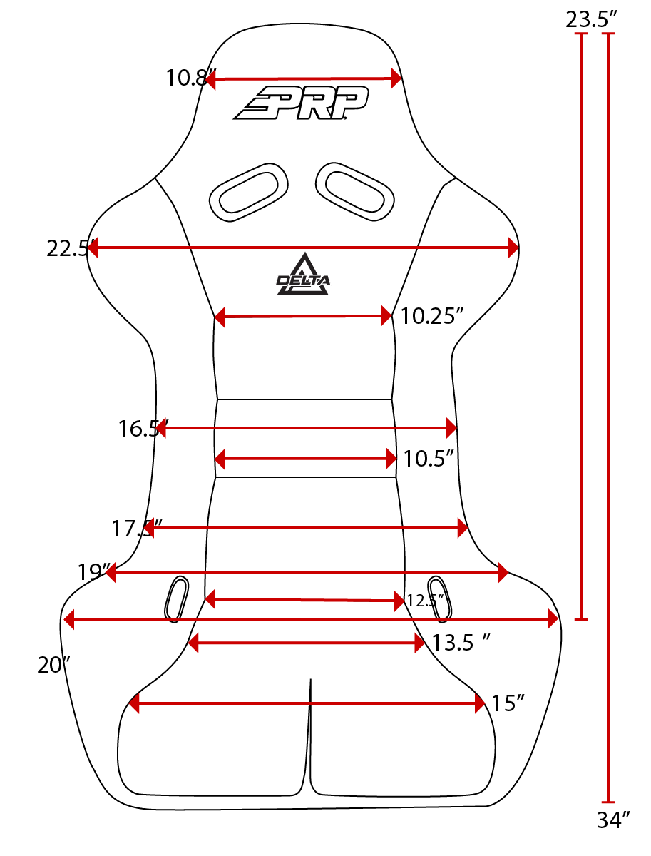 The Delta is our smallest size composite seat. Designed to be able to fit in a variety of vehicles, especially ones that don't have a lot of space in the cab. While the overall dimensions of the seat are small, we included unique angled containment on the sides, that allows drivers up to waist size 36" to still sit comfortably. Features include angled lap belt slots for proper harness installation, and thick dual-density foam all around for added comfort while off-road. The Delta is also customizable. With over 60+ different colors and materials to choose from. Design the perfect look for your ride! Requires PRP composite seat mounts to install.