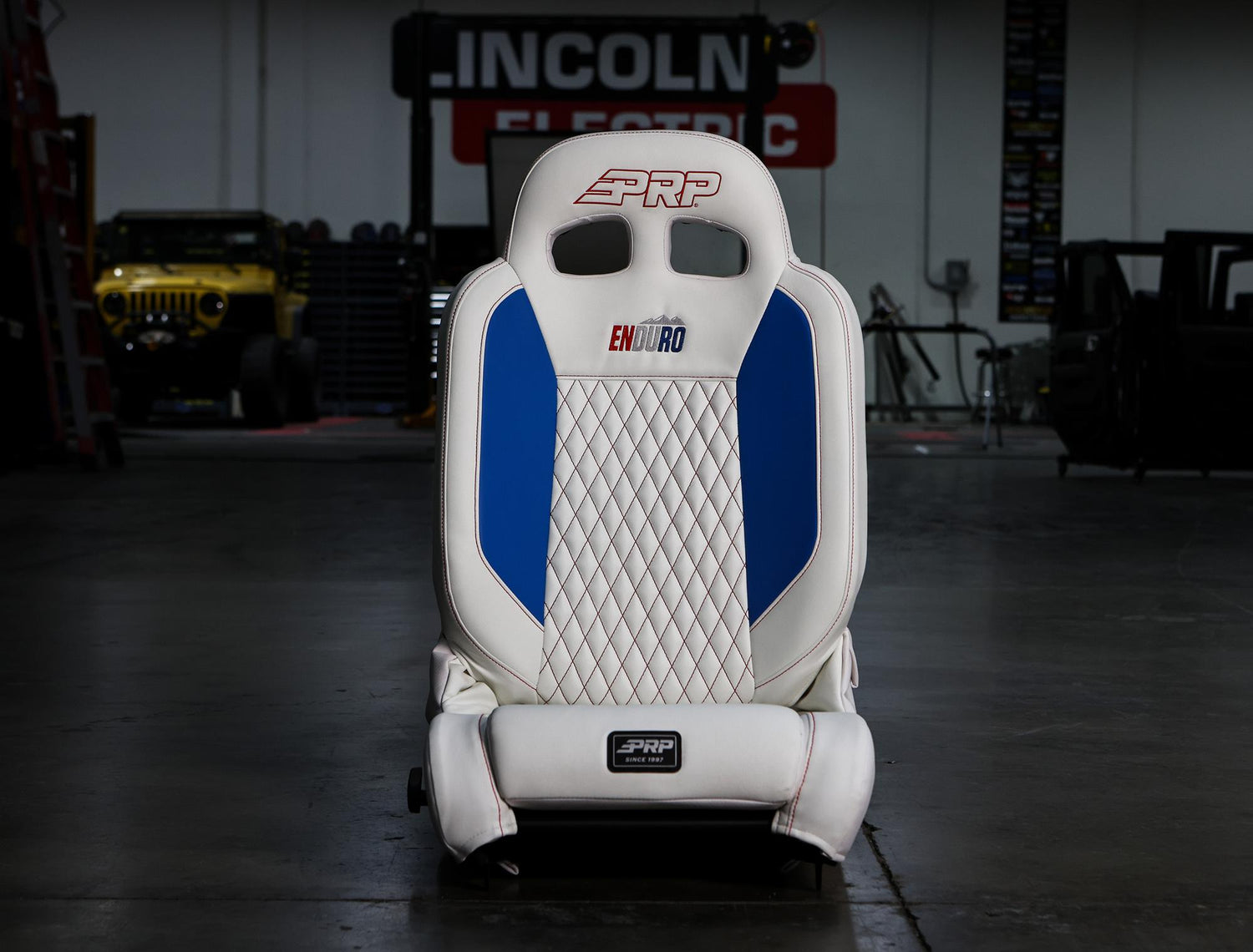 Add comfort and containment to your Jeep, Truck, or Buggy with the EnduroDaily Reclining Suspension Seat from the Enduro Elite Series, the newest line of Reclining Suspension Seats from PRP. Featuring modern styling and a dual slot headrest for harnesses, the EnduroDaily is designed to replace your stock seats in a Jeep Wrangler, Jeep XJ, Ford Ranger, Trucks, or Buggy for increased enjoyment, comfort, and containment off-road. The EnduroDaily Reclining Suspension Seat features Low Bolsters on the Back and Bottom offering a little more containment than most stock seats, but are still quick and easy to get in and out of. This seat is great if you use your vehicle as a daily driver most of the time, with occasional trips off-road. A removable, dual-layered seat cushion means the EnduroDaily offers better leg support and extended comfort. The vinyl-coated nylon suspension liner and dual-density foam decrease the impact on the body and reduce body fatigue after a long day on the road or while exploring off-road. The EnduroDaily reclines completely and inclines enough to allow access to the rear seats. The bottom tabs easily bolt to PRP’s series of mounts built for Jeeps, Broncos, Ford Rangers, and more. Design your own and Make it Yours! With over 60+ different colors and materials to choose from, you can customize the perfect seat for your ride. Extra available options include Front Goggle Pockets, Rear Storage Pockets, Water Paks, Heated Seats, Air Lumbar, and various Diamond Stitches. NOTE: Extra wide seats will not fit in most Jeep models unless you have made significant modifications to the interior. As always, please review your measurements closely.