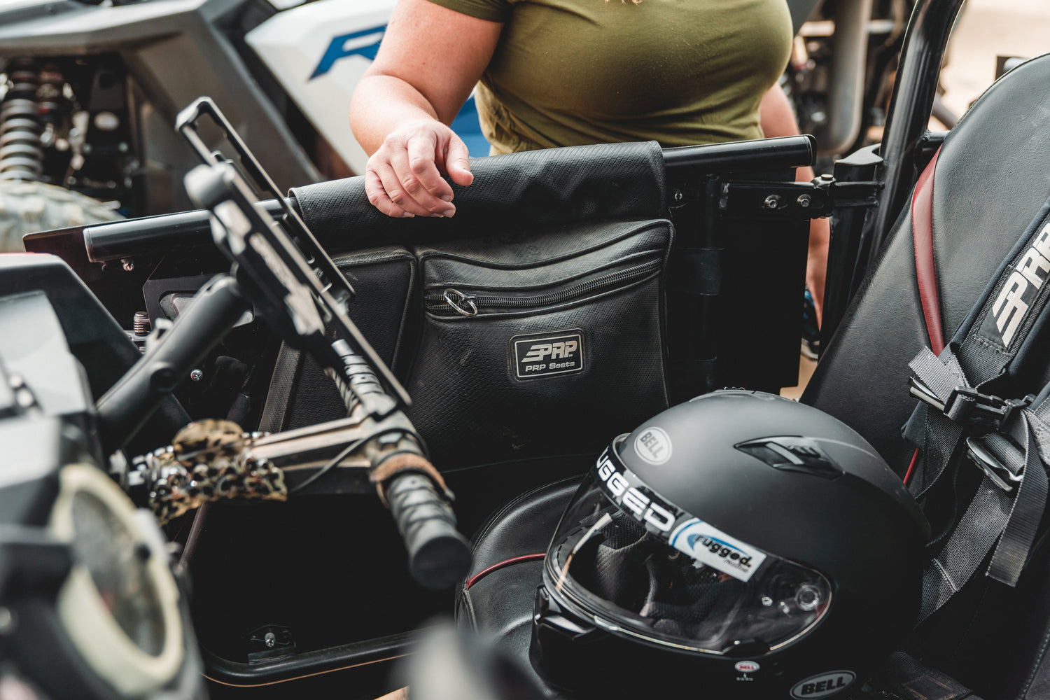 PRP's revolutionary door bag concept, redesigned for PRP Steel Frame Doors. This bag provides much needed storage space in your Polaris RZR while also protecting your knee from knocking against the door and giving you a comfortable place to rest your arm. Available only in black.