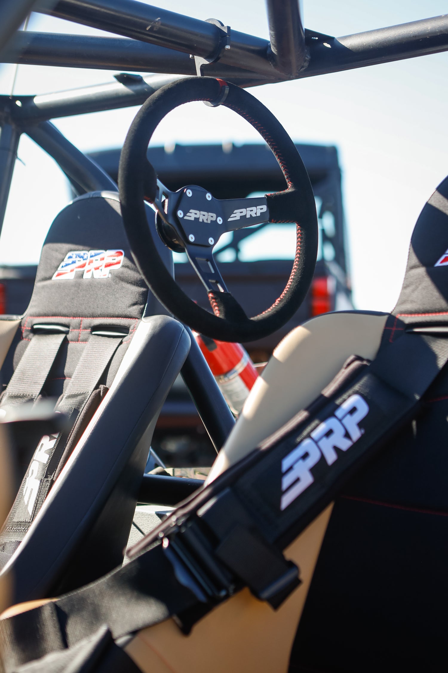 PRP's Steering Wheels are built for off-road. Constructed from high strength aluminum, with a matte black finish for extra durability... and to make it look cool. The steering wheel has a 6-point bolt pattern, specifically chosen because it fits the majority of aftermarket quick releases. Comes with a PRP emblem plate.