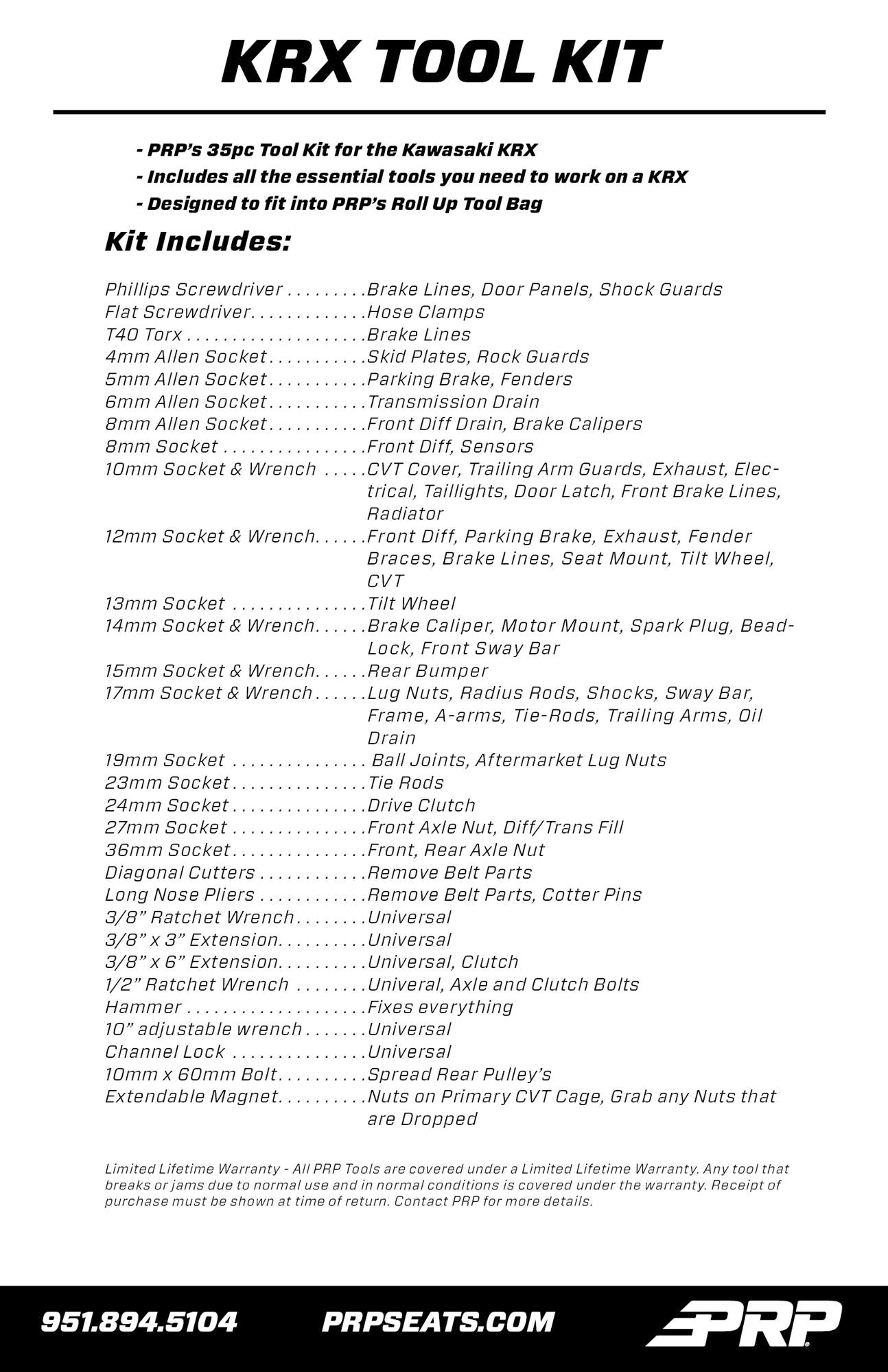 PRP Seats H116 - Kawasaki KRX 35pc Tool Kit Tools Only
