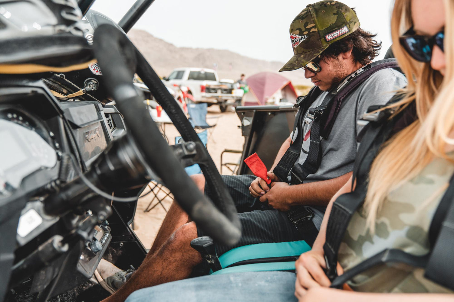 Use all belts provided. Secure lap belt first; low and snug across hips. Sternum strap tight at chest line (min. 4 inch below the neck). Adjust remaining straps per instructions and confirm fitment restrains user and provides safe clearance from wheel, dash, roll cage, etc.