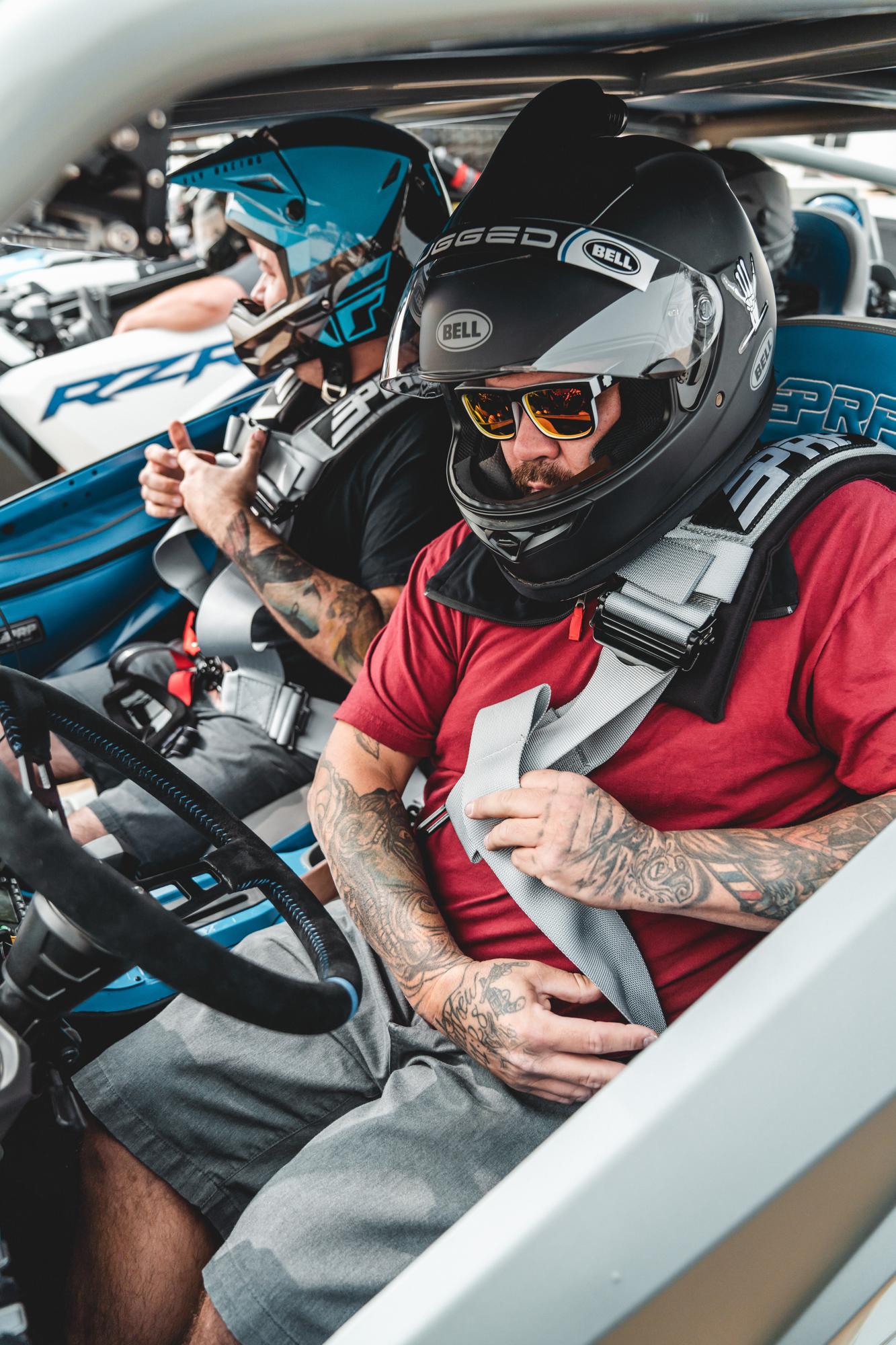 Use all belts provided. Secure lap belt first; low and snug across hips. Sternum strap tight at chest line (min. 4 inch below neck). Adjust remaining straps per instructions and confirm fitment restrains user and provides safe clearance from wheel, dash, roll cage, etc.