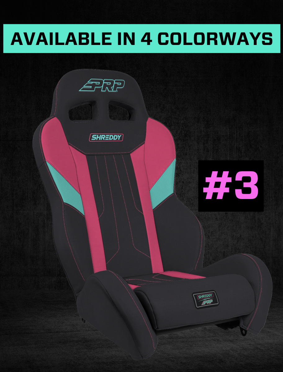 This PRP Seats / Shreddy collaboration XCR Suspension Seat is the raddest off-road seat for your UTV. New featureson the XCR include a removable seat cushion, a 5th point harness slot, and all new modern styling. Additional bands allow you to customize the colors and materials of your seat more than ever!