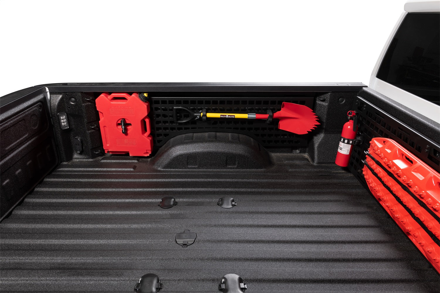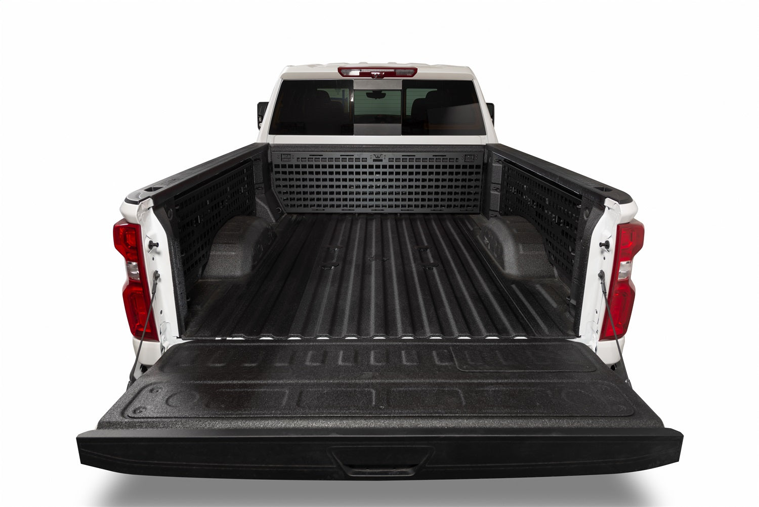Secure your cargo in the back of your truck bed with this next level one of a kind truck bed storage organizing system. New from Putco are the Molle Panel inside truck bed panels system. This amazing cargo storage system is perfect for latching down nearly anything you want to secure in place like Molle bag, trail gear, construction gear, jacks, or anything your heart desires. Available for the bulkhead, side bed and tailgate area. Choose from getting the entire set or just getting one side. Great for Overlanding pickup trucks or work trucks to hang and organize gear, tools and more. These truck bedside organizers called molle panels are great for storing your gear and organizing your truck bed whether you use your pickup for work or play. Plus the are a must-have for the overland truck for your next outdoor adventure.Constructed out of durable CNC cut 10 gauge aluminum that is finished with a mini-textured black powder-coat. This American made panel system works with most industry-leading mounting accessories like Quickfist, Kolpin, Molle, and much more. Also, this come is compatible with most soft roll-up and hard fold cover on the market.Installing a Molle panel is simple with no drilling or cutting of any kind and its custom design for your year, make and model allows you to use your OEM tie-down area and other standard OEM features of your truck. Each panel is backed by a three-year warranty. So if you are tired of your cargo rolling around and want it secured in place the Putco Molle Panels are for you.