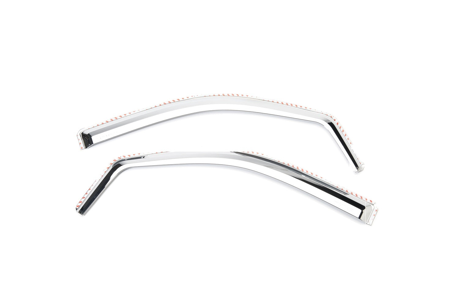 Enhance your truck or SUV with the exceptional Putco Element Chrome Window Deflectors. Crafted from a combination of durable and lightweight materials, these deflectors offer a sleek and eye-catching chrome finish that elevates the exterior aesthetics of your vehicle.Experience the perfect balance of functionality and style with these in-channel window deflectors. They enable the circulation of fresh air within your vehicle, ensuring a comfortable and refreshing atmosphere while effectively keeping rain, wind, and other weather elements at bay. Additionally, their innovative design minimizes wind noise, providing you with a serene driving experience.Versatility is a key feature of the Putco Element Chrome Window Deflectors. With their precisely engineered construction, they effortlessly accommodate a wide range of trucks, SUVs, and cars, ensuring a seamless fit on various vehicle models. Moreover, installing them is a breeze!, thanks to the convenient pre-applied 3M automotive tape that allows for a quick and hassle-free installation process.Upgrade with the best-in-class window deflectors with the Putco Element Chrome Window Visors and enjoy the perfect combination of enhanced aesthetics, improved ventilation, and reduced wind noise!