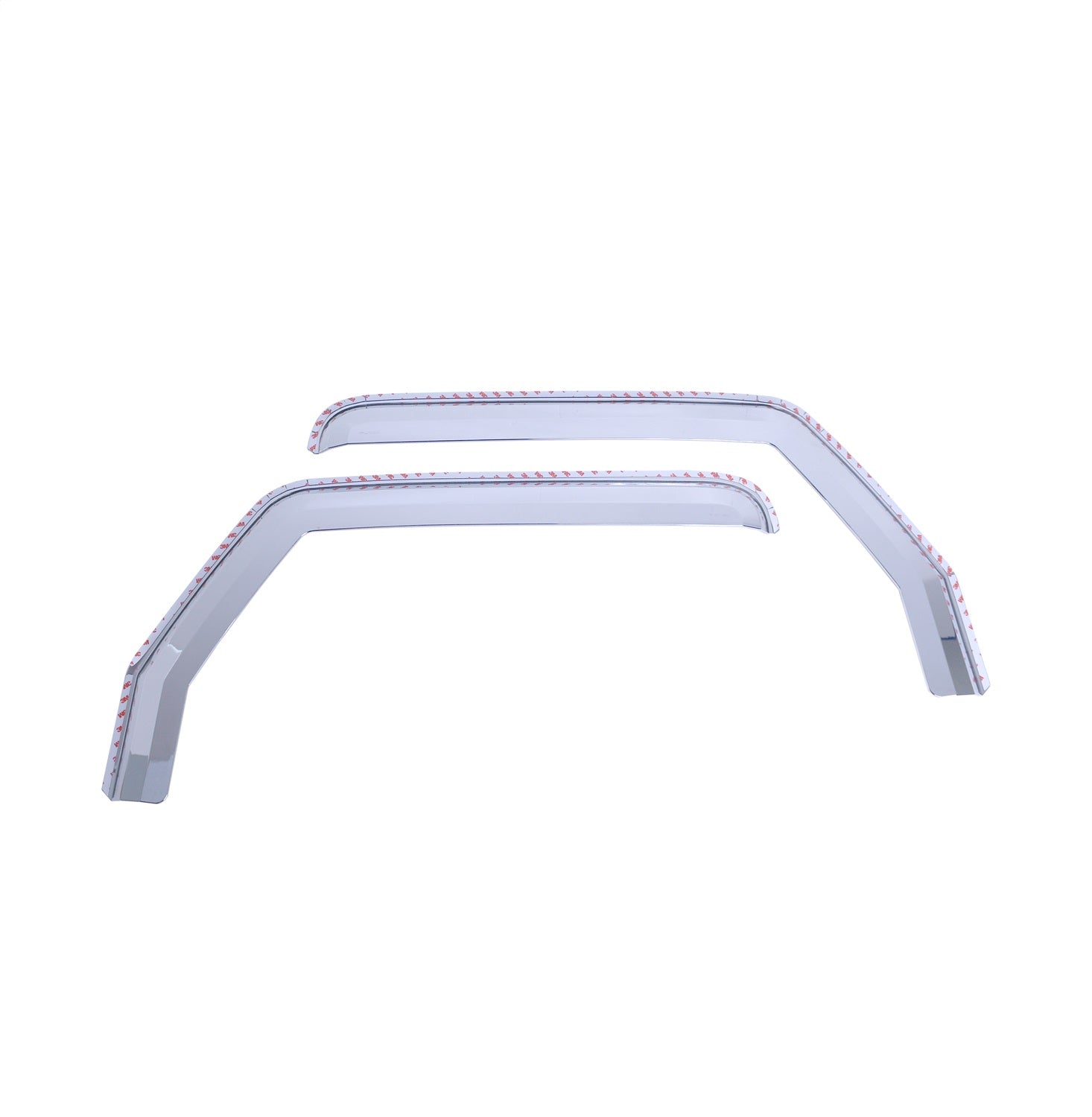 Enhance your truck or SUV with the exceptional Putco Element Chrome Window Deflectors. Crafted from a combination of durable and lightweight materials, these deflectors offer a sleek and eye-catching chrome finish that elevates the exterior aesthetics of your vehicle.Experience the perfect balance of functionality and style with these in-channel window deflectors. They enable the circulation of fresh air within your vehicle, ensuring a comfortable and refreshing atmosphere while effectively keeping rain, wind, and other weather elements at bay. Additionally, their innovative design minimizes wind noise, providing you with a serene driving experience.Versatility is a key feature of the Putco Element Chrome Window Deflectors. With their precisely engineered construction, they effortlessly accommodate a wide range of trucks, SUVs, and cars, ensuring a seamless fit on various vehicle models. Moreover, installing them is a breeze!, thanks to the convenient pre-applied 3M automotive tape that allows for a quick and hassle-free installation process.Upgrade with the best-in-class window deflectors with the Putco Element Chrome Window Visors and enjoy the perfect combination of enhanced aesthetics, improved ventilation, and reduced wind noise!