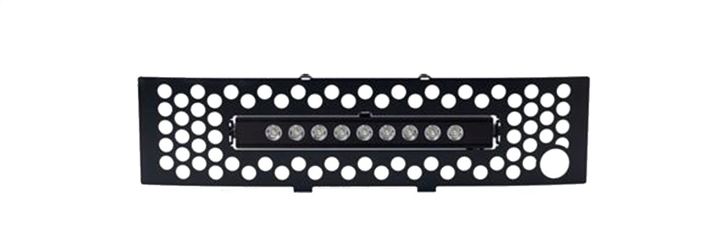 Bumper Grille Insert; EcoBoost GRILLE; Stainless Steel Black Punch; w/Heater Plug/10 in. Luminix Light Bar;