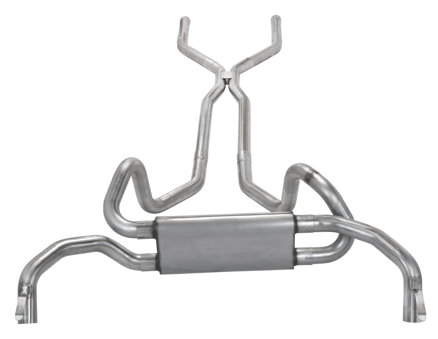 Pypes SGF40 - Crossmember Back Crossflow System w/H-Pipe Exhaust System 67-74 Split Rear Dual Exit 2.5 in Intermediate And Tail Pipe Race Pro Mufflers/Hardware Incl Tip Not Incl Natural 409 Stainless Steel Exhaust