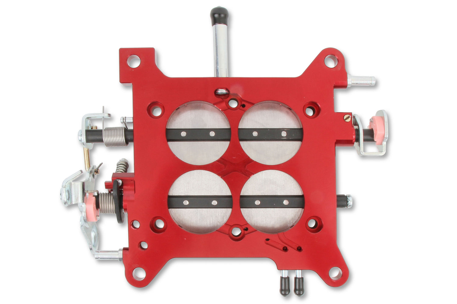 Billet Carburetor Base Plate; 4 Barrel; 1 3/4 in. Throttle Bore; Mechanical Secondary; Red Finish; Stainless Steel Blades;
