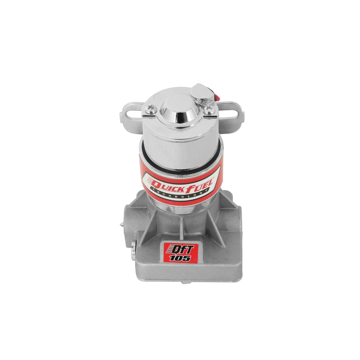 Designed for street/strip applications, the QFT 105 electric fuel pump will provide consistent performance and fuel control. This pump will flow more than enough fuel to support up to 350 HP engines. This pump draws four amps of current and is capable of producing 7 psi of maximum pressure. All mounting hardware and brackets are included.105 GPH Flow Rate Constructed of Lightweight Steel and Aluminum7 PSI Maximum Pressure Features 3/8 in. NPT Inlets and Outlets Externally Accessible Pressure Relief Valve Draws 4 Amps or Less at Full Load Designed for Carbureted Applications Only Not compatible for Methanol or E85 Fuels
