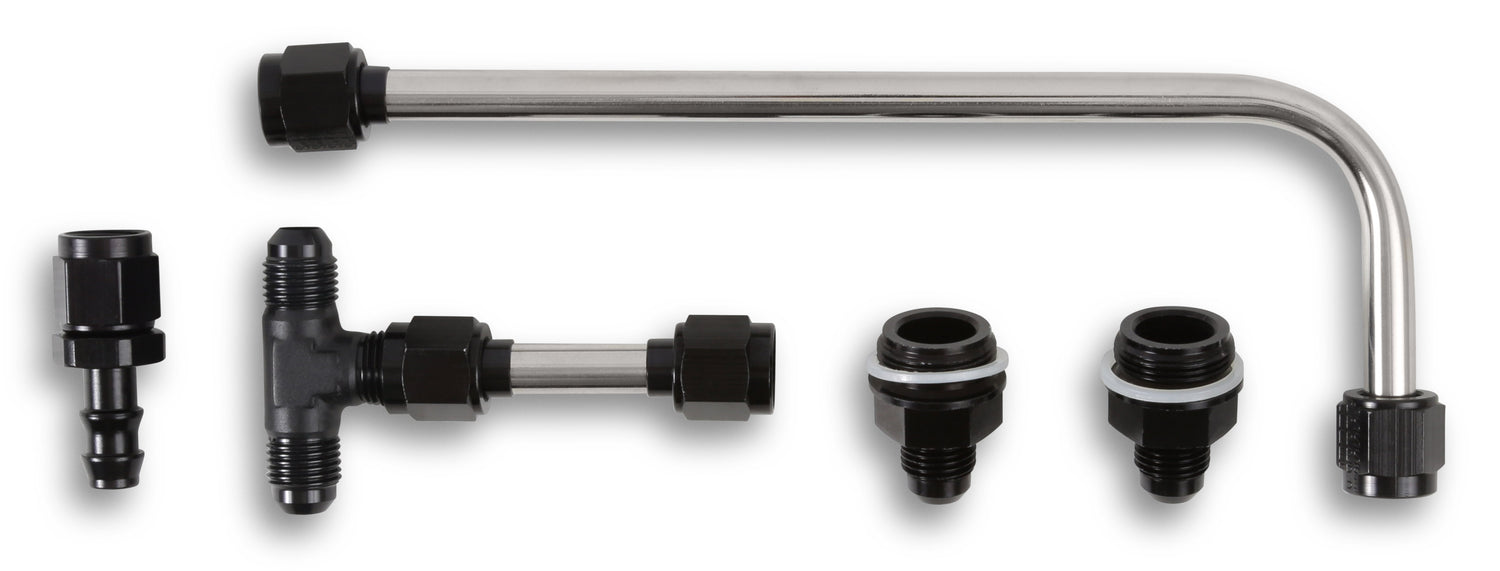 Fits Slayer Series and Model 4160 carbs with black #6AN fittings and fittings and 3/8 in. barb adapter.