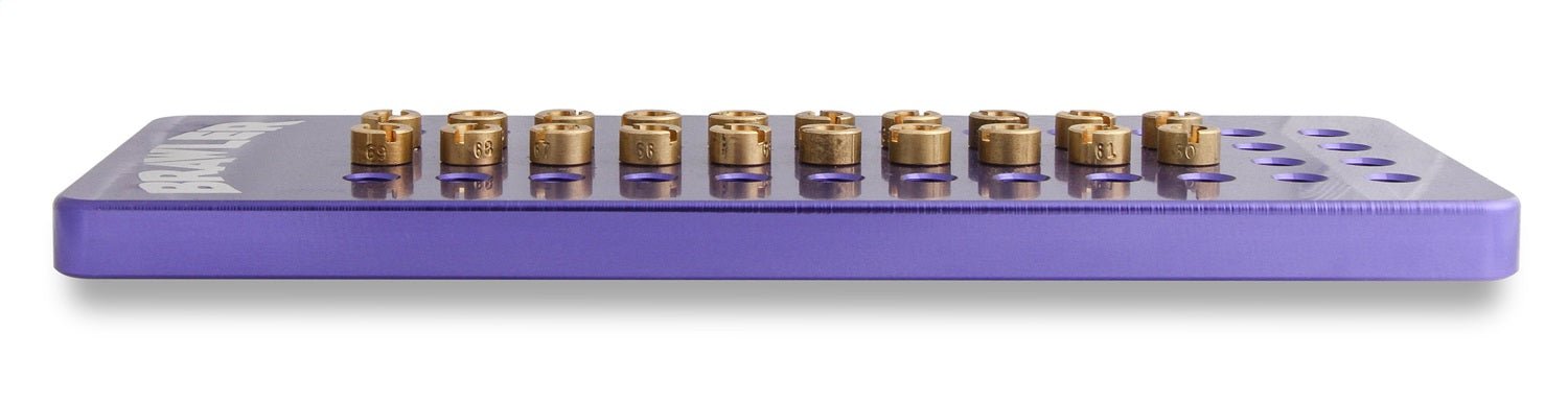 Brawler® Jet Assortments w/Billet Jet Plate; Incl. 10 Pairs Of Jet Sizes 70-79; Purple Anodized Finish; Enough Room To Hold 48 Jets;