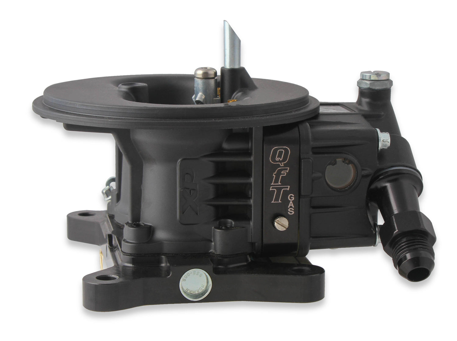 In circle track classes that mandate two-barrel carburetors, customizing a street carburetor has been the norm for decades. Not anymore. Designed from the ground up to meet the unique demands of circle track racing, QFTs new XP-Series offers the performance benefits of a custom carburetor in an affordable, turnkey, class-legal package. At a bare minimum, modifying a standard street carburetor for circle track duty typically involves changing the throttle-plates, floats, and metering blocks. These custom modifications can easily exceed the cost of a turnkey QFT two-barrel carb while still lacking many of the key features that only a clean-sheet redesign can offer. A high-flow aluminum main body design centers the venturi over the throttle-body assembly. To further increase airflow, QFT centers the air horn over the venturi, removes the choke tower, and carefully profiles the air inlet transition. The result is enhanced airflow and fuel distribution, which improves throttle-response and horsepower. All XP-Series carburetors are equipped with roller bearing seals which provide smoother throttle response, less wear on shaft, and longer life. Available in 500- and 600 cfm sizes, the XP-Series sets a new standard in two-barrel circle track -flow aluminum main body with centered venturi for improved performance and better air/fuel distribution Black anodized billet 2-Circuit metering block and throttle body Throttle body incorporates roller bearing seals which provide smoother operation, less wear on shaft, and longer lifeAnti-siphon check valve in main body to reduce pump pull-over Changeable emulsion bleeds and power valve channel restrictions for better tuning capabilities Dual inlet fuel bowl with #8AN fittings Dual sight glass windows for easy float adjustment Single wedge circle track float Exclusive Black Diamond coating for enhanced corrosion protection and appearance. Provides a 6% reduction in fuel temperature.