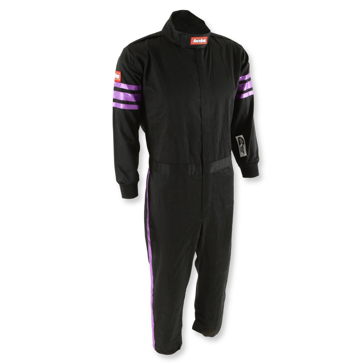 Driving Suit - Pro-1 - 1-Piece - SFI 3.2A/1 - Single Layer - Fire Retardant Cotton - Black / Purple Stripe - Youth X-Large - Each