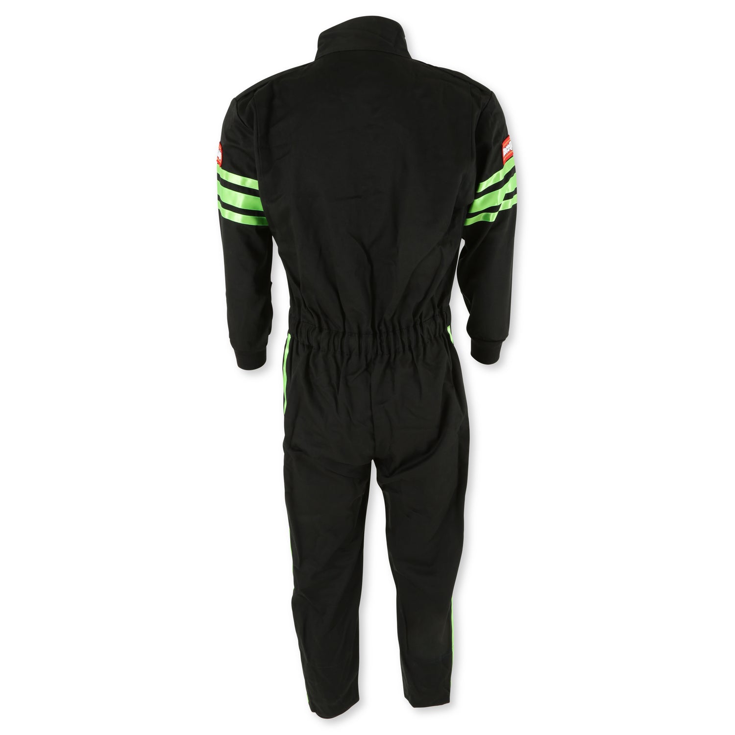 Driving Suit - Pro-1 - 1-Piece - SFI 3.2A/1 - Single Layer - Fire Retardant Cotton - Black / Green Stripe - Youth 2X-Large - Each