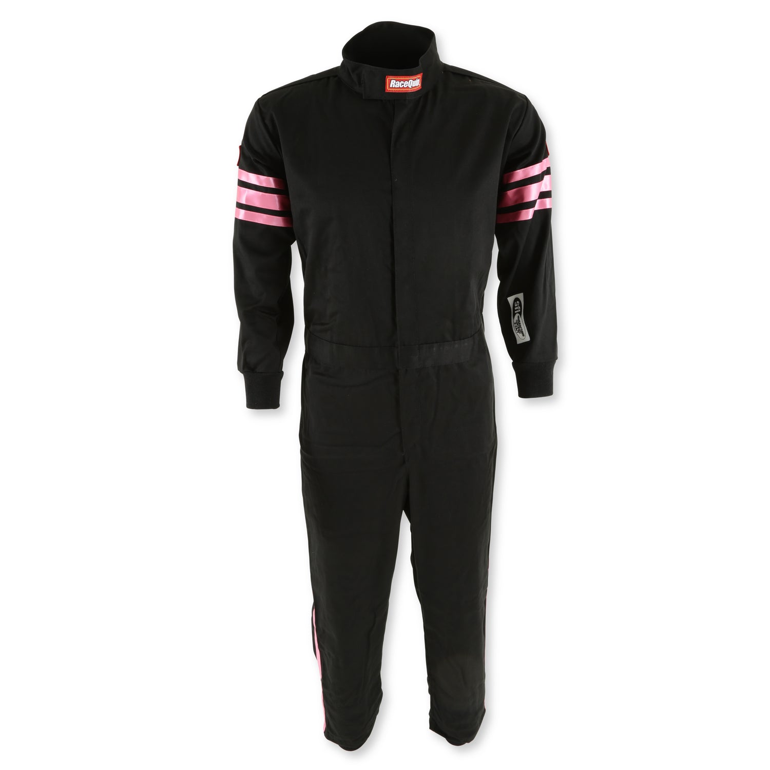 Driving Suit - Pro-1 - 1-Piece - SFI 3.2A/1 - Single Layer - Fire Retardant Cotton - Black / Pink Stripe - Youth Large - Each