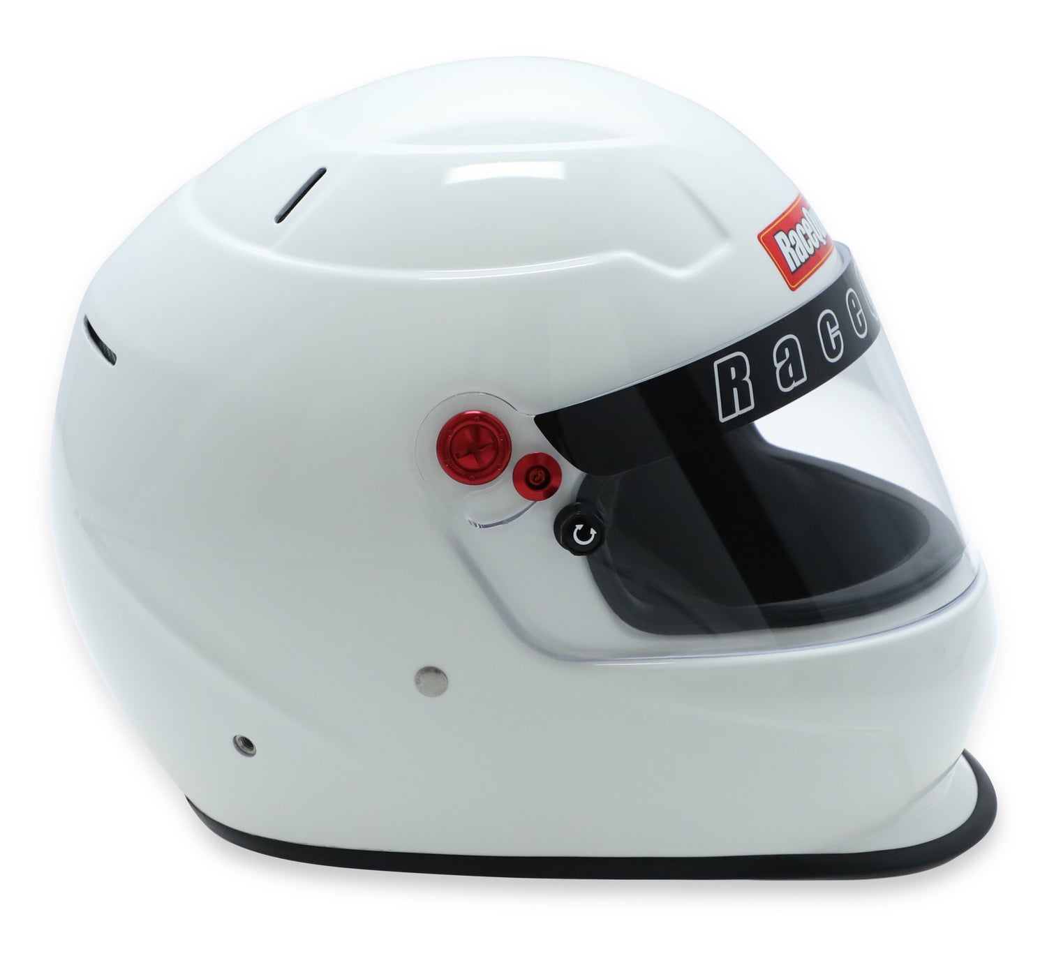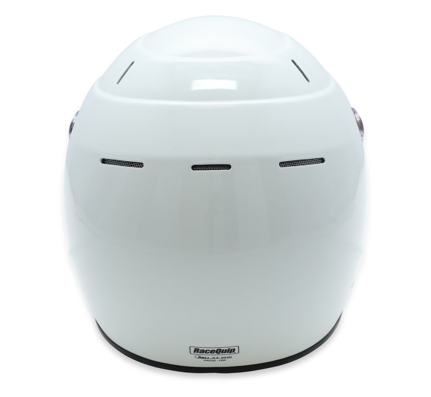 The RaceQuip PRO20 is a Snell SA2020 rated full face auto racing helmet that incorporates contemporary styling with modern production techniques. The shell is built using pre-preg composite materials placed into pressurized steel molds to achieve the best combination of light weight and strength. Reinforced M6 threaded HANS/HNR inserts are mated to the shell along with an expanded polystyrene (EPS) liner. HANS or other Head and Neck Restraint device anchor posts (not included) can be easily attached to the outside of the helmet using the installed M6 threaded inserts. The distortion free 3mm polycarbonate faceshield features a red anodized aluminum pivot kit, hand ratcheting TearOff posts, and a silicone eyeport gasket to seal out dust and dirt. A wide eyeport provides good peripheral vision and allows the use of personal eyewear. The Snell SA rating means that the interior, paint, and kevlar chin strap are all fire retardant so the RaceQuip PRO20 Helmet is suitable for use in all forms of motorsports. The comfort fit blended Nomex® interior along with exhaust vents on the top and back of the shell help keep your scalp cool. All these features are wrapped in a stylish aero design FRP composite shell with a medium sized chin spoiler.
