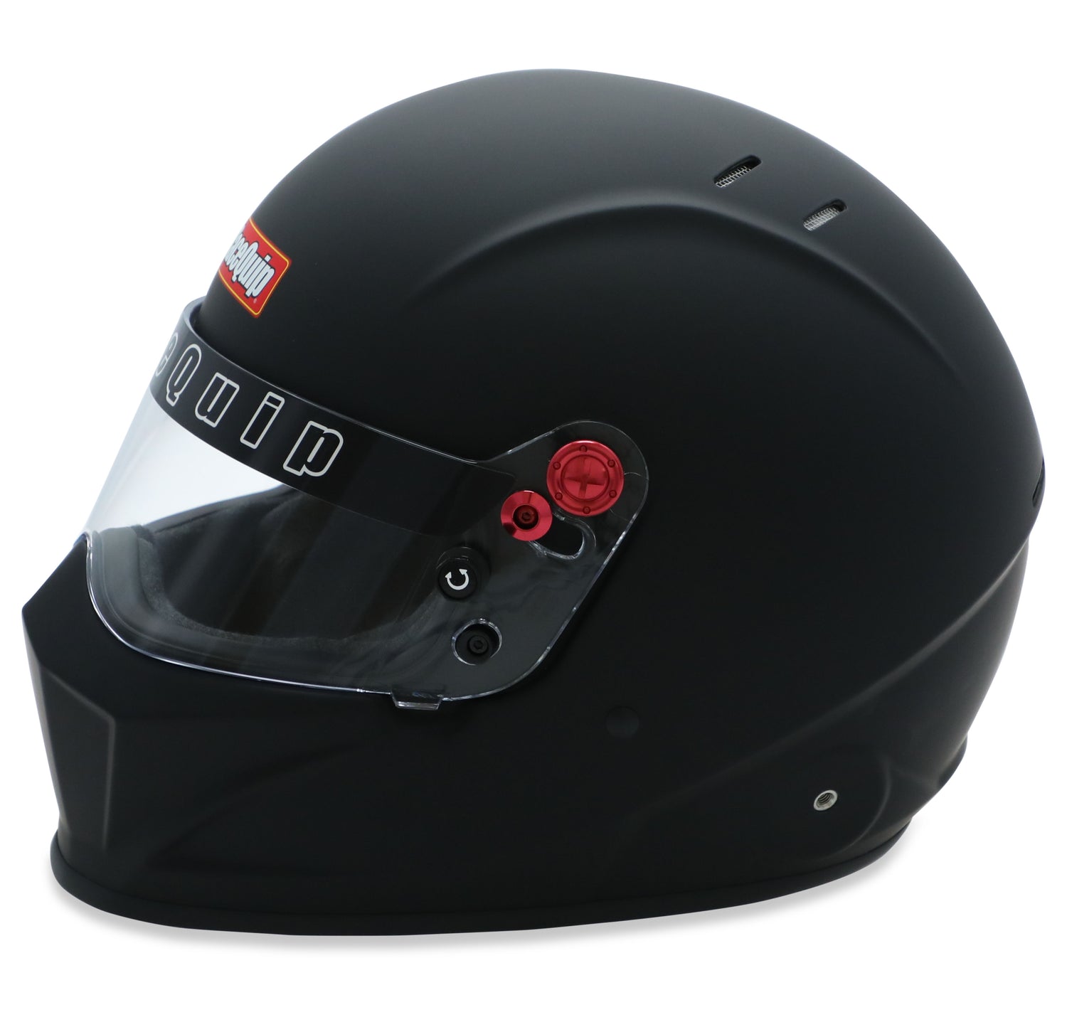 RaceQuip's VESTA20 full face Snell SA2020 rated helmet is a bold departure from traditional auto racing helmet styling. The VESTA20 incorporates contemporary design with modern production techniques. The shell is built using composite materials placed into pressurized steel molds to achieve the best combination of light weight and strength. This innovative new helmet model features FRP Composite shell construction and a uniquely shaped chin bar to support a scalloped face shield design. Reinforced M6 threaded HANS/HNR inserts are mated to the shell along with an expanded polystyrene (EPS) liner. HANS or other Head and Neck Restraint device anchor posts (not included) can be easily attached to the outside of the helmet using the installed M6 threaded inserts. The distortion free 3mm polycarbonate face shield features a molded thumb catch, red anodized aluminum pivot kit, hand ratcheting Tear Off posts, and a silicone eye port gasket to seal out dust and dirt. A wide eye port provides good peripheral vision and allows the use of personal eyewear. Included with the helmet are an extra set of thicker cheek pads to allow a customized fit. The Snell SA rating means that the interior, paint, and Kevlar chin strap are all fire-retardant.