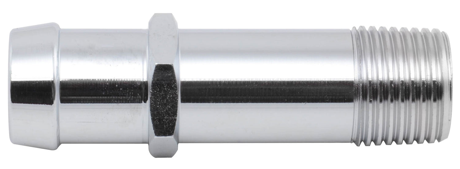 Fitting - Water Pump - 1/2 in NPT Male to 3/4 in Hose Barb - 3 in Long - Aluminum - Chrome - Each