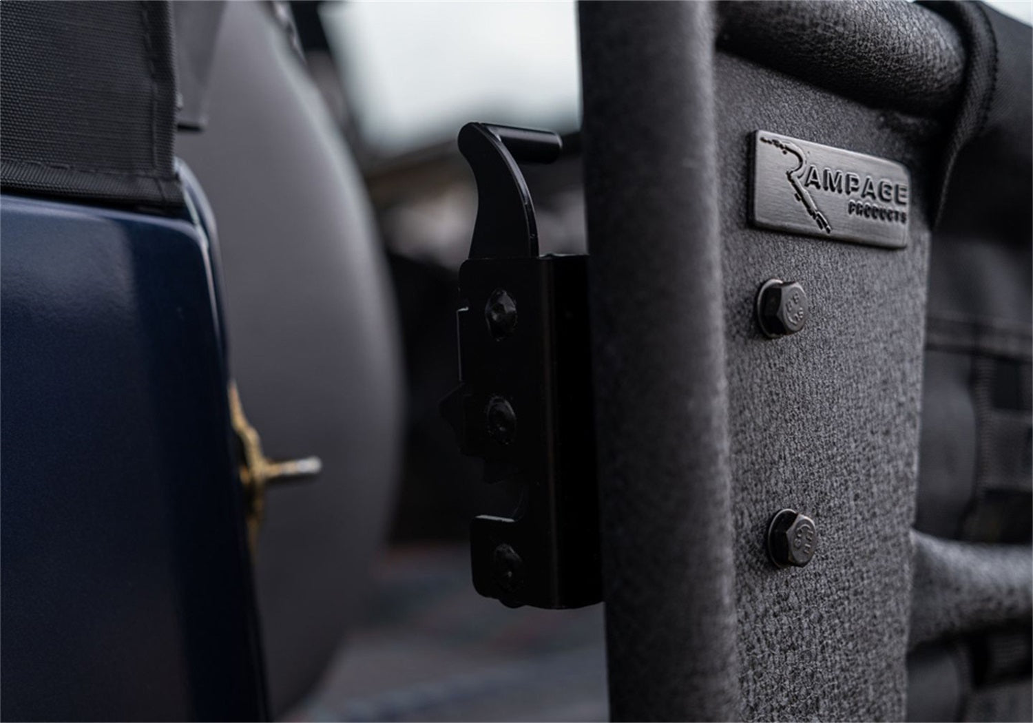 Get the feel of the trail while staying protected with Trail Doors from Rampage(TM) Products. Adventure-worth attributes included thick steel safari-style construction with a textured black powder coated finish, removable netting, and easy-to-open handles.Installs easily with adjustable hinge pins and latch plates. Net is included.