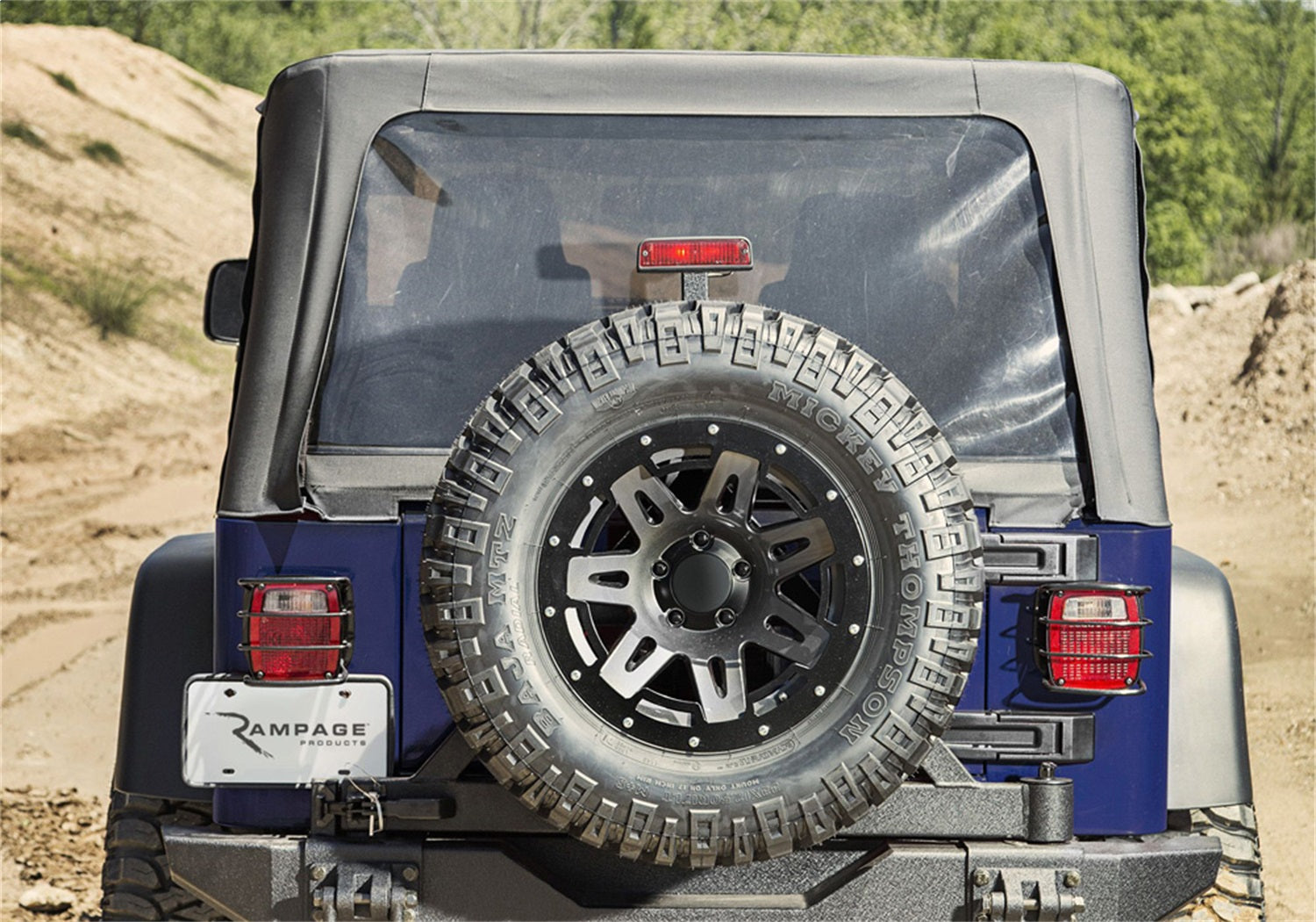 Replace your aging, worn out factory soft-top and gain some additional storage space inside the driving compartment. All the features of the original factory top with exclusive Rampage additions which includes two zippered storage pockets. Produced in original factory specifications and colors. The Rampage replacement top easily installs over factory framework, attaches to factory mounting points and original equipment belt rail attachment system. Also, with door skins that slip over the upper doorframes. Soft upper doors are included. Fits all factory applications. Available with either tinted or clear windows. For half door applications only.