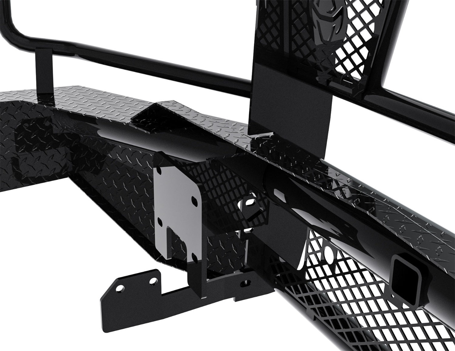 The Legend Series Front Bumper Replacement is the toughest product on the market. It is frame mounted and is one piece fully welded construction. The main body of the bumper is manufactured from 4in. schedule 40 pipe and diamond plate steel, and the grille guard portion is composed of 12 gauge tubing providing wraparound headlight protection. The punched plate grille insert is specifically designed to match the make and model of the vehicle – no expanded metal used. The Legend Series Front Bumper comes standard with a 2in. receiver and most applications keep tow hooks and factory fog lights. This bumper is a valuable addition to any vehicle and will provide maximum peace of mind when driving down the highway.