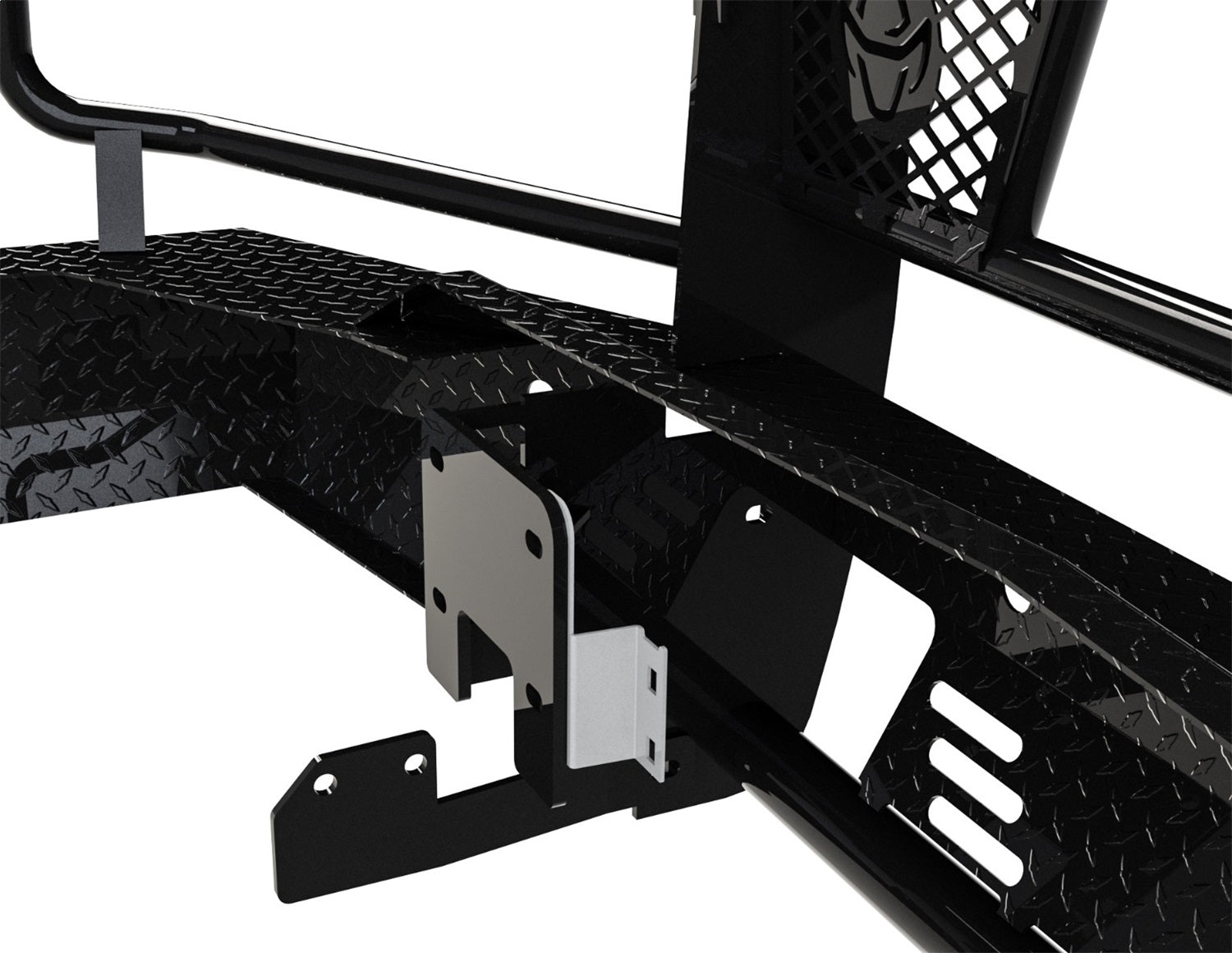 The Summit Series Front Bumper Replacement still provides superior protection similar to the Legend while offering an alternative style with reduced weight. This bumper is designed and ideal for half ton trucks. It is frame-mounted and is one-piece fully welded construction. The main body of the bumper is manufactured from diamond plate steel and the grille guard portion provides wraparound headlight protection. The punched plate grille insert is specifically designed to match the make and model of the vehicle – no expanded metal used. Most pre-2014 Summit Series Replacement Bumpers allow for the optional patented H2R (Hidden 2 in. Receiver). In some applications, factory fog lights and tow hooks can be retained.
