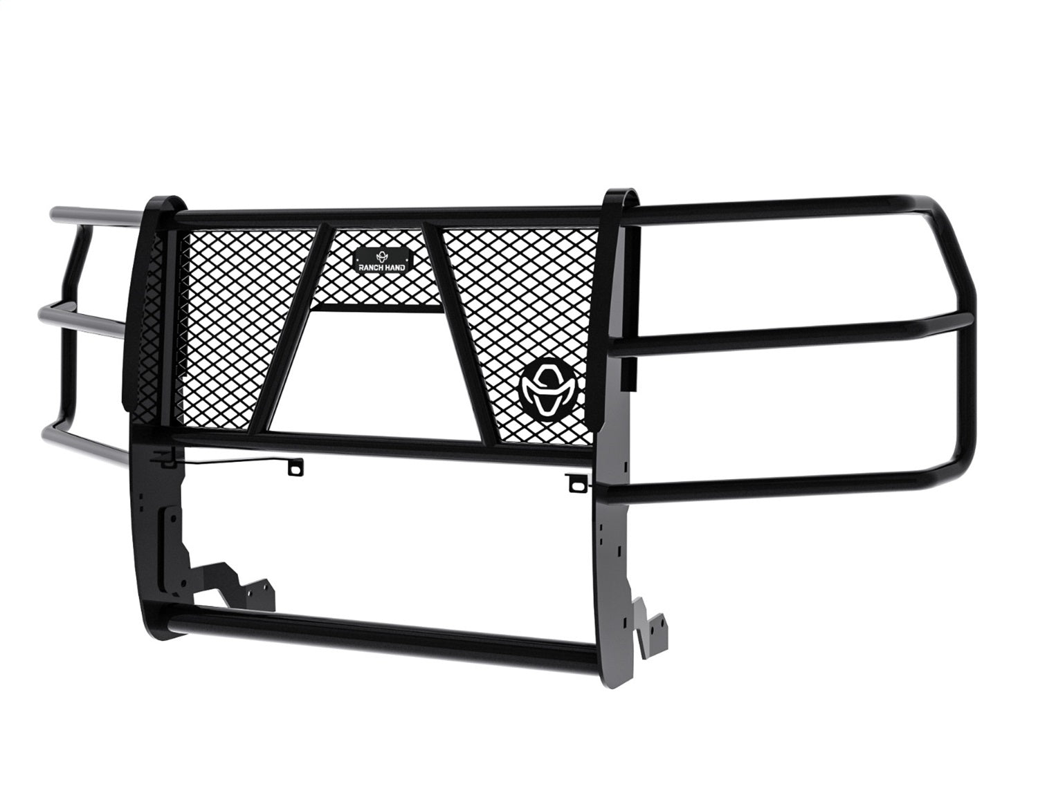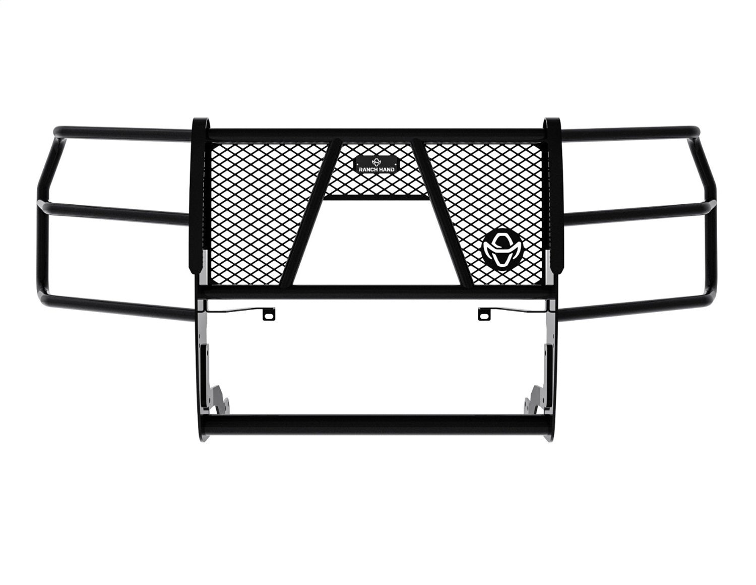 The Ranch Hand Legend Grille Guard is the icon of the vehicle protection aftermarket industry. The quality and the style of the Ranch Hand Legend Grille Guard is unmatched. You need the peace of mind that when you are out on the road, you have done everything you can to protect your vehicle and your family. Providing outstanding protection, the Legend Grille Guard has a one piece fully welded construction and is frame mounted in four locations for maximum strength and to eliminate vibration.The grille guard is constructed from 12 gauge tubing and has 5/16in. upright thickness and features punched grille inserts specifically designed to match the make and model of the vehicle – no expanded metal used. All Ranch Hand products are finished with a durable black powder coat paint. Most applications allow you to maintain factory tow hooks.