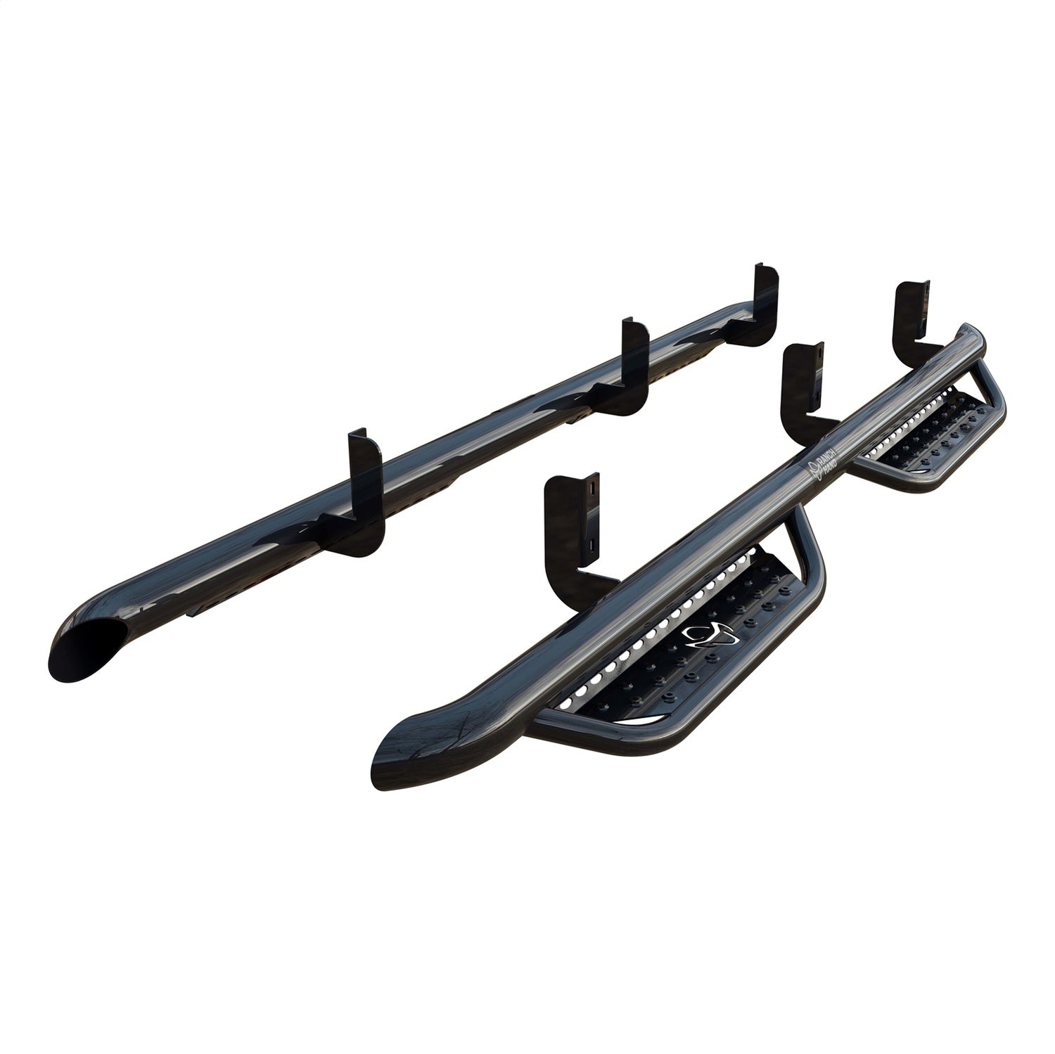 Strong and dependable, Ranch Hand running steps are constructed from 3 in. pipe and 3/16 in. thick brackets for enhanced security to the truck. The steps are frame-mounted in factory locations for easy installation with no drilling required on most models. The front step plates are punched with the official cowboy hat Ranch Hand logo, and all steps have raised steel treads to promote reliable traction when entering or exiting your truck. To maximize safety, Ranch Hand running steps have a vehicle-specific configuration to match the door layout and promote optimal safety and convenience. They feature 1-1/2 in. diameter, drop-down tubes that hold 4 in. wide, 12-gauge punched plates for the perfect platform for stepping into your truck with ease. Each set of steps is finished with a tough, dual-layer A-coat and black powder coating that provides exceptional rust resistance for long-lasting dependability. This particular set of Ranch Hand running steps fits select model years of the Ford F-250 Super Duty and Ford F-350 Super Duty (see application info to verify fitment).