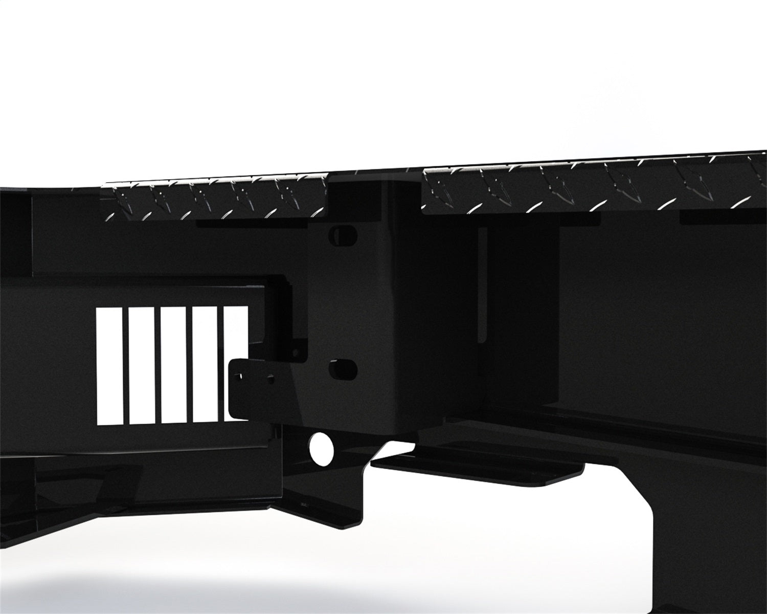 Ranch Hand's Sport back bumper is designed with the same unsurpassed quality and workmanship as the Legend series and compliments the Summit Series Front Bumpers. This durable back powder coated bumper is made from formed channel and has diamond plated step plates and skirts. It comes standard with backup/work lights. Depending on the model, the end cap has a built in step and most makes and models retain factory reverse sensors. Do not exceed vehicle manufacturers recommended towing capacity. Factory receiver must be retained. Hammertone finish is an option.