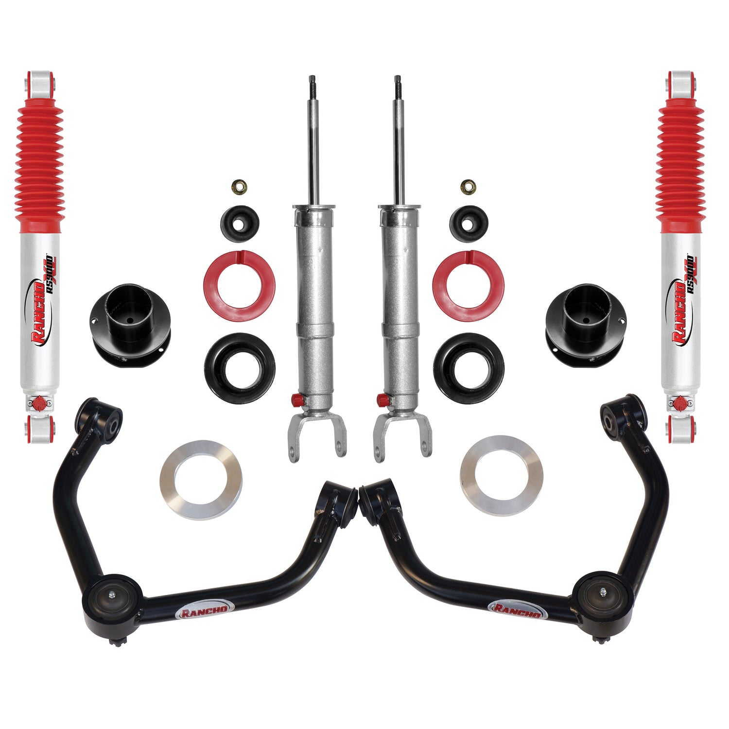 - COMPLETE SOLUTION -- Includes Rancho RS9000®XL struts and rear shocks, upper control arms with ball joints, rear spacer kit, and mounting hardware