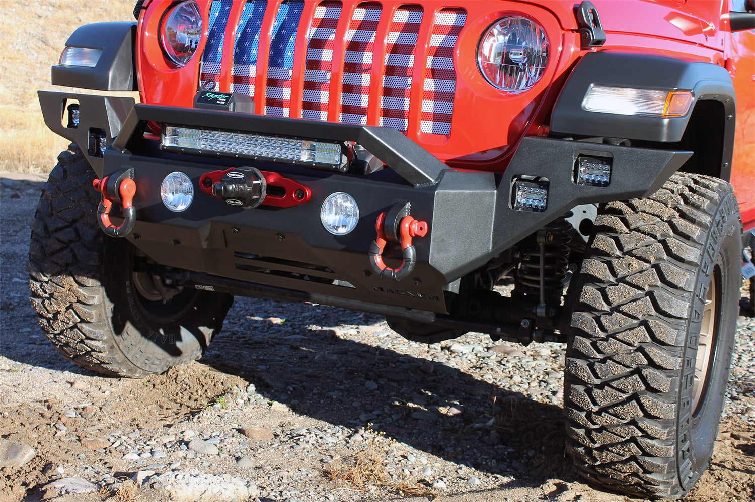 Magnum Front Winch Bumper; w/RT-Series Light Bracket; Double 3.5 in. Square Lights; No Parking Sensor; Incl. Skid Plate;