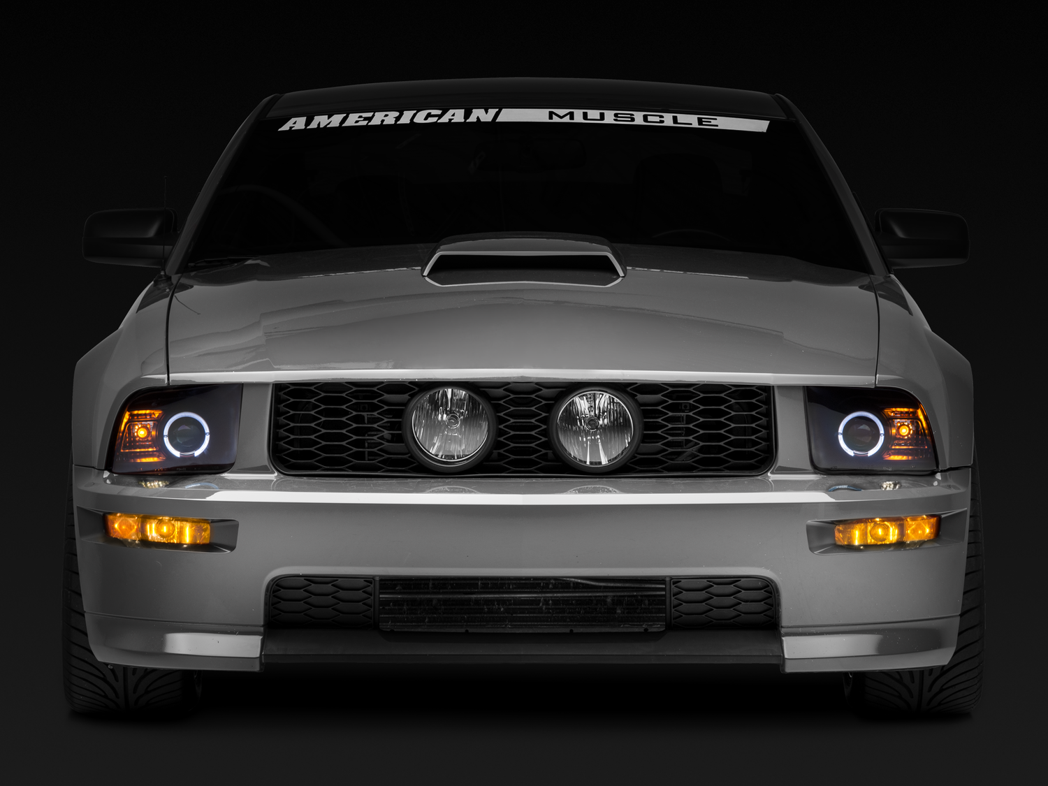 Inspired by the redesigned 2010 Ford Mustang these Black Raxiom Headlights feature a LED Halo accent that encircles a projector style light to add sleek modern styling to your the 2005 to 2009 S197 Mustang. The projector lenses light up the road ahead with a bright focused beam of light that not only looks great, but improves your night visibility. The integrated Accent Halo's give your Mustang a sexy exotic flair that separates it from the boring herd of look-a-likes. Equipped with H9 bulbs for high/low beams this pair of Mustang Headlights are DOT (Department of Transportation) approved for legal street use under compliance # QR1200189. These headlights include an H9 bulb and projector style lens for optimum high/low beam performance.
