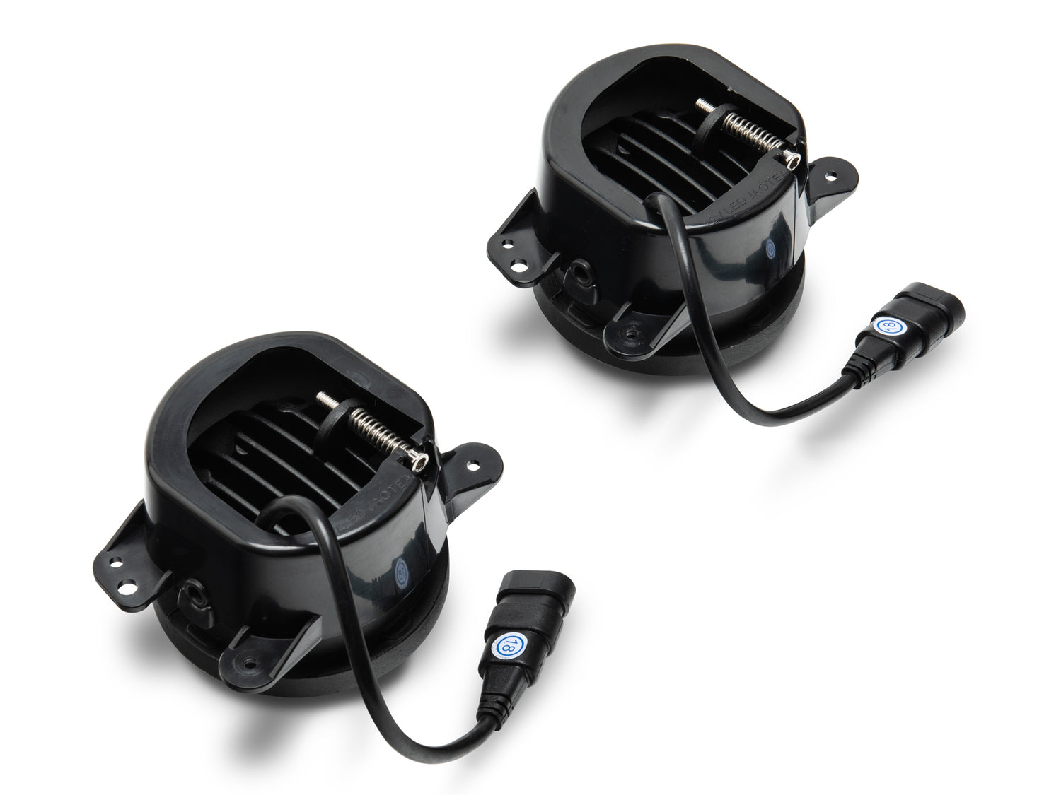 A pair of Axial Tri-Bar White LED Fog Lights are an excellent way to upgrade the appearance and visibility of your 2007-2025 JK & JL Wrangler. These Axial Fog Lights have high output White LED lighting that will certainly be much brighter than your factory incandescent fog lights allowing you to clearly see the path ahead in the thickest fog. Manufactured to perform in the harshest conditions, these Axial Fog Lights feature a rugged aluminum housing with a clear polycarbonate lens. Each Fog Light is epoxy sealed to prevent moisture from harming the state of the art electronics found inside. These Axial LED Fog Lights have a lifespan of 50,000 hours and a IP68 rating making them perfect for use on dusty and wet trails. Axial designed their 4-inch LED Fog Lights to be a direct plug and play replacement for your JK's original factory fog lights. With the included wiring harness adapters, installation can be completed in under 1 hour. These Axial 4-inch Round LED Fog Lights will not only improve the appearance of your JK, but they also meet or exceed the strict guidelines set forth by the U.S. Department of transportation (DOT) and the Society of Automotive Engineers (SAE) making them DOT and SAE compliant. These Axial White Tri-Bar LED Fog Lights are designed for use on 2007-2025 Jeep Wrangler JK & JL models. These will work for JLs with factory LED fog lights, and vehicles with aftermarket bumpers. Will not fit Wrangler Sport with factory bumper.