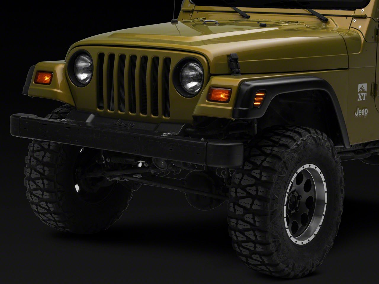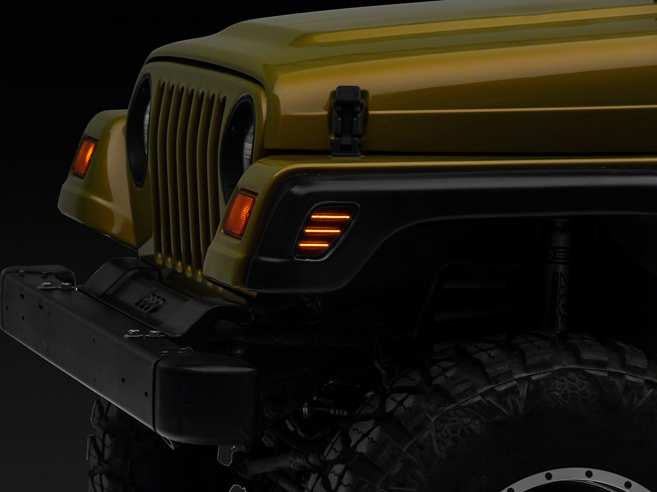 A set of Axial Smoked LED Side Marker Lights are a simple and effective way to upgrade the exterior styling of your 1997-2006 TJ Wrangler. These Side Marker Lights feature three rows of razor sharp LEDs that replaces the unsightly hot spot of the factory lights. These Axial Side Marker Lights not only look great, but they are also much brighter than the weak factory incandescent lights for increased visibility day or night. Raxiom manufactures its Side Marker Lights from injected molded ABS plastic housings for durability, and use smoked polycarbonate lenses for aggressive good looks. These Side Markers employee high output amber SMD LED strip lighting for super bright illumination. Raxiom ensures that its Side Marker Light housings are weather sealed to prevent dirt and moisture from harming the state of the art electronics found inside. Raxiom designed its LED Side Marker Lights to be a direct plug and play upgrade for your TJ's original factory lights. There is absolutely no cutting, splicing or resistors required. Just pop out the old factory side markers and disconnect the wiring harness. Plug the harness into the back of your new LED Side Markers and snap them in place of the old ones. It's that simple!